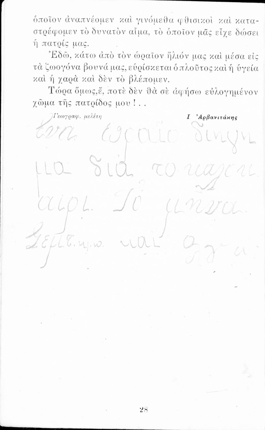 Κωδικός αναγνώρισης: 20-E0345 Τίτλος: Αναγνωστικόν έκτης τάξης προς μεθοδικήν διδασκαλίαν της καθαρευούσης Συγγραφέας: Ι. Αρβανιτάκης Εικονογράφος: Βάσος Γερμενής Μέγεθος και υπόστρωμα: Σχολικό εγχειρίδιο, 18εκ., σκληρό εξώφυλλο, 278 σελίδες. Εξώφυλλο (έγχρωμο), σκίτσα (ασπρόμαυρα). |
