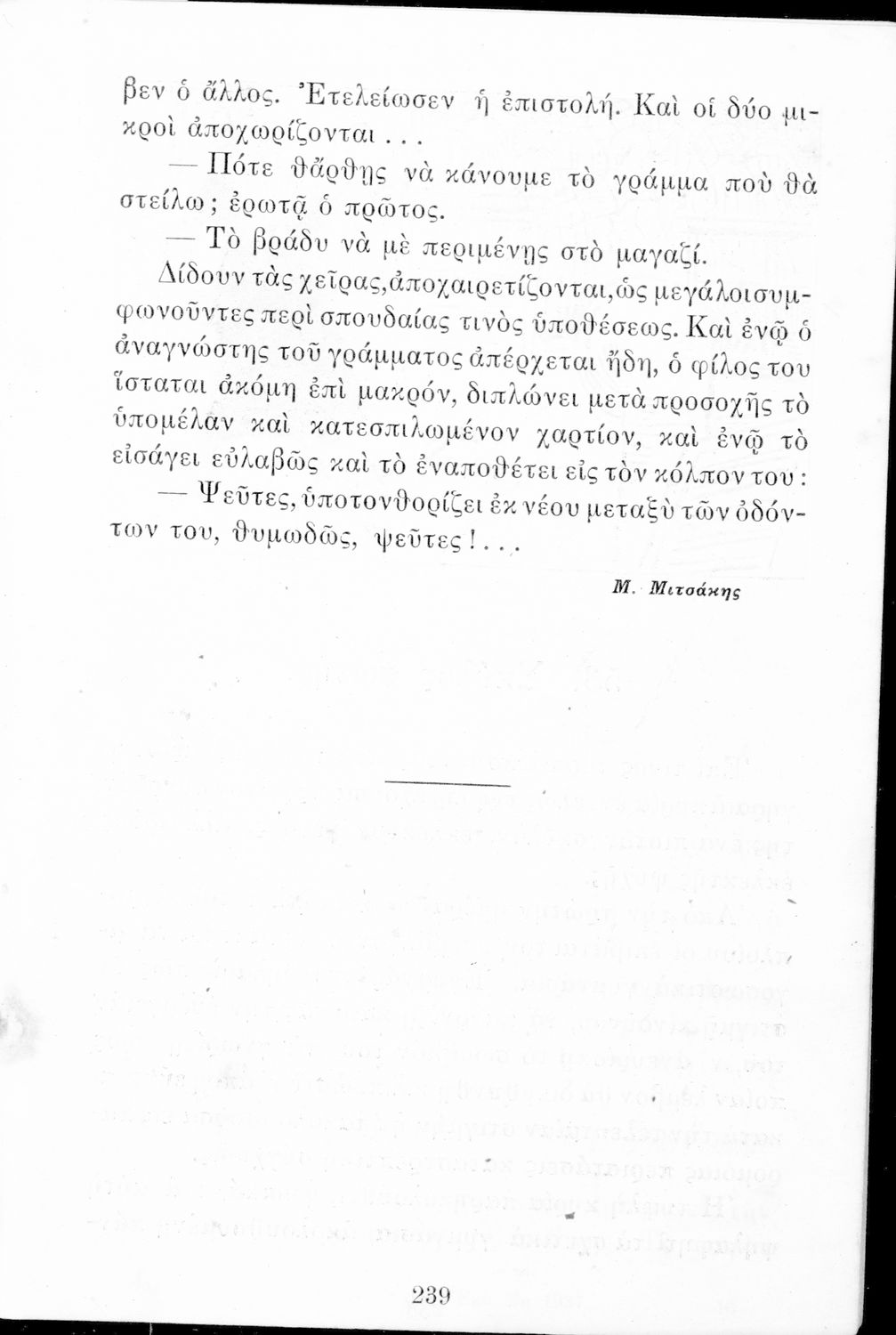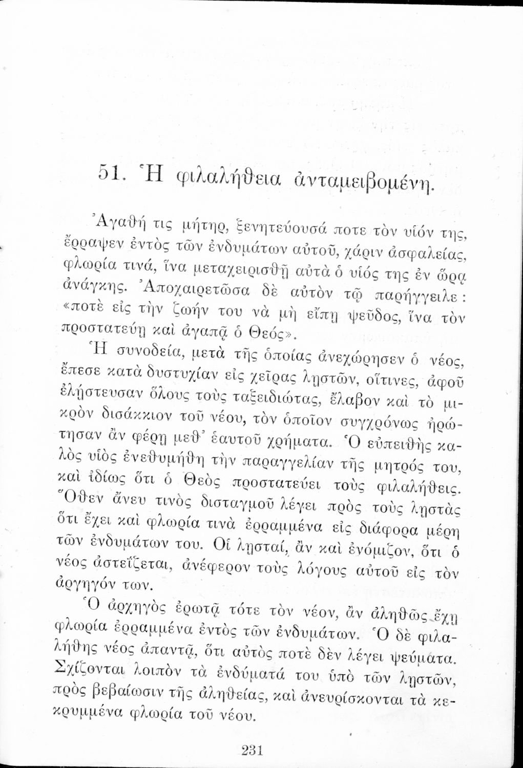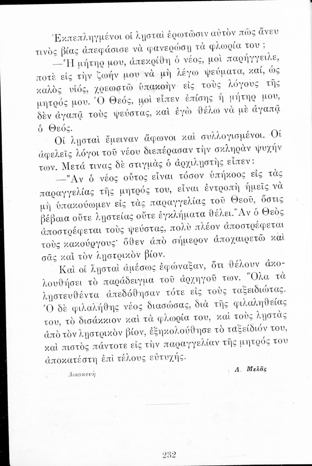 Αναγνωστικό ΣΤ΄ Δημοτικού που περιλαμβάνει πεζά γραμμένα σε καθαρεύουσα και ποιήματα σε δημοτική εμπνευσμένα από την οικογένεια, τη θρησκεία, την πατρίδα, την ελληνική φύση και ύπαιθρο, την αγάπη για τα ζώα, τις καθημερινές ασχολίες και επαγγέλματα και τις ηθικές αρετές.