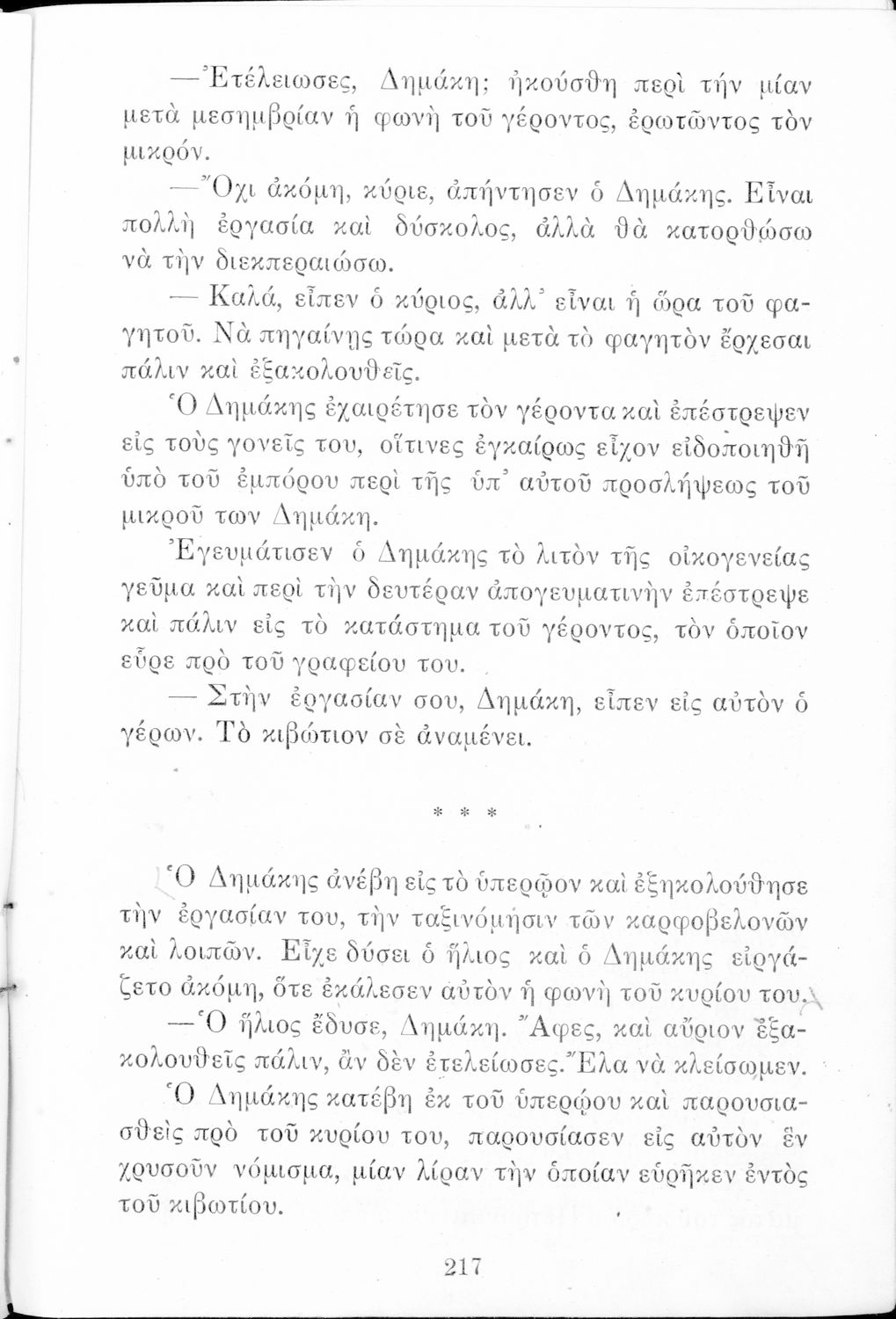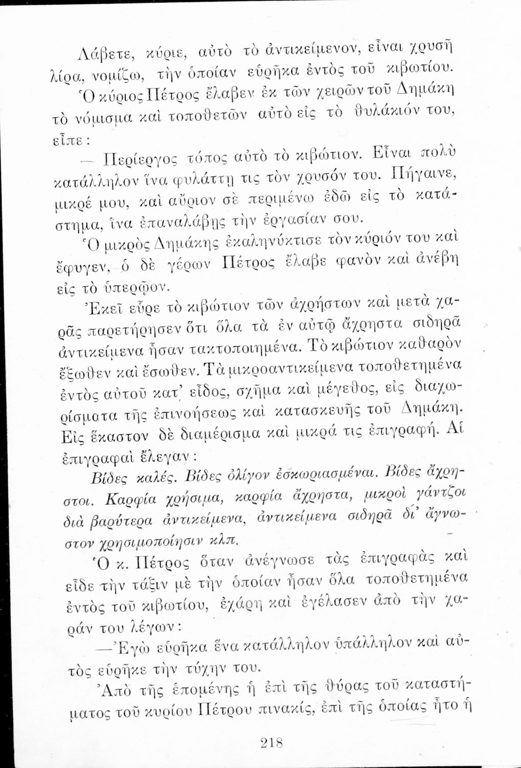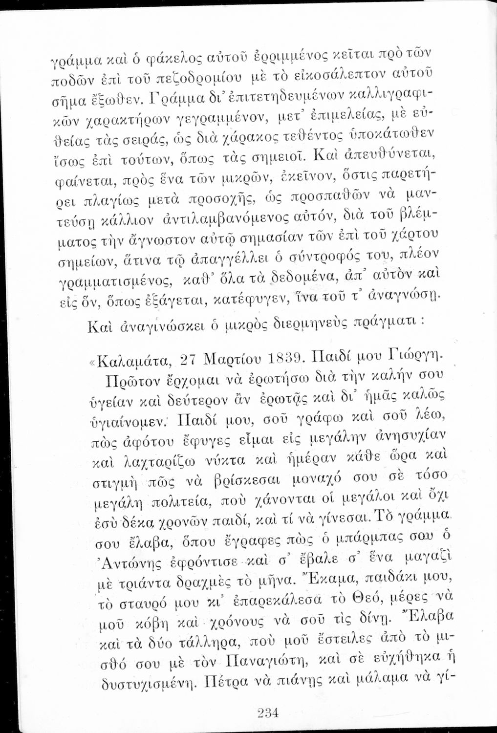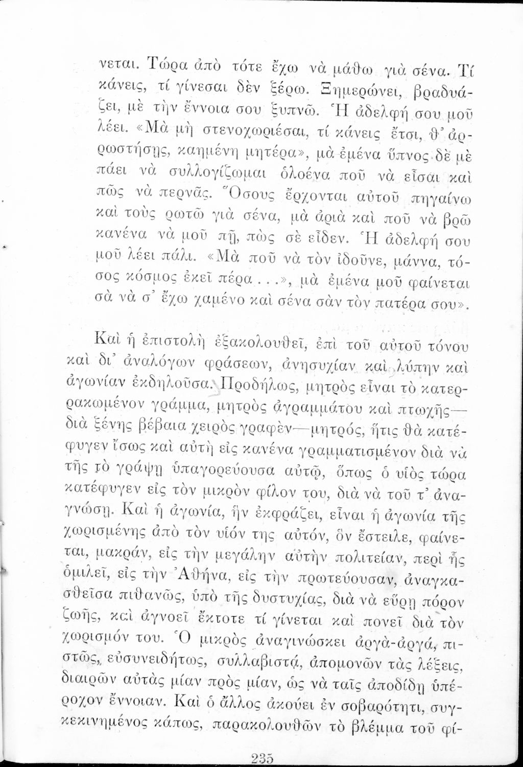 Αναγνωστικό ΣΤ΄ Δημοτικού που περιλαμβάνει πεζά γραμμένα σε καθαρεύουσα και ποιήματα σε δημοτική εμπνευσμένα από την οικογένεια, τη θρησκεία, την πατρίδα, την ελληνική φύση και ύπαιθρο, την αγάπη για τα ζώα, τις καθημερινές ασχολίες και επαγγέλματα και τις ηθικές αρετές.