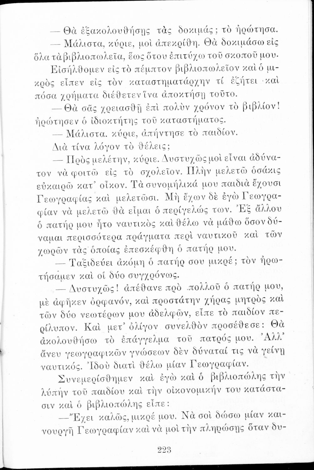 Σχολικό εγχειρίδιο Γαλλικών που περιλαμβάνει κείμενα, λεξιλόγιο και ασκήσεις. Ο συγγραφέας ήταν καθηγητής της Δημόσιας Εμπορικής Σχολής Αθηνών και του Αρσακείου.