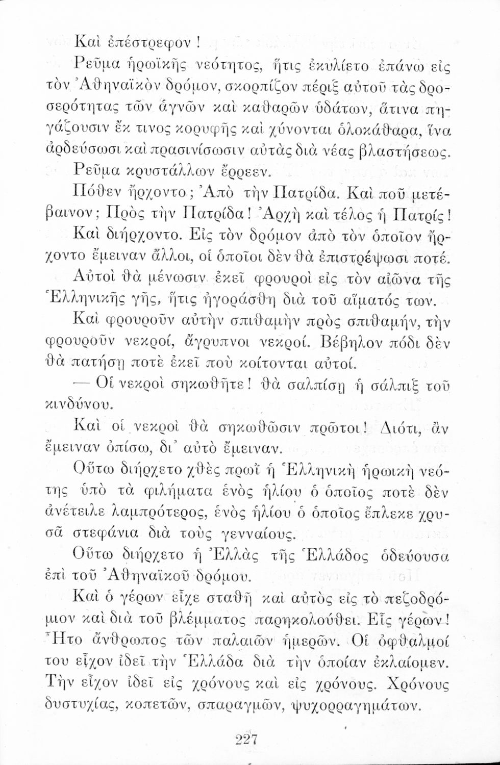 Αναγνωστικό ΣΤ΄ Δημοτικού που αποτελείται από πεζά γραμμένα σε καθαρεύουσα και ποιήματα σε δημοτική εμπνευσμένα από την οικογένεια, τη θρησκεία, την μυθολογία και ιστορία, την υγιεινή, την πατρίδα, την ...