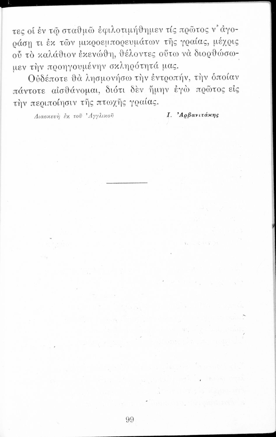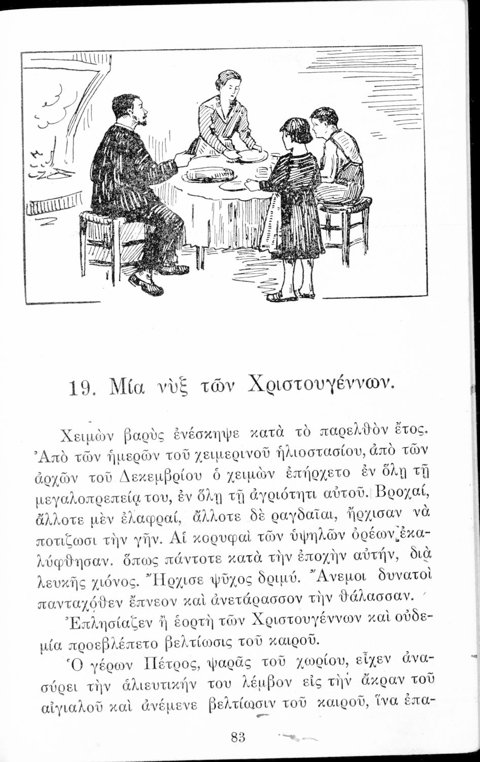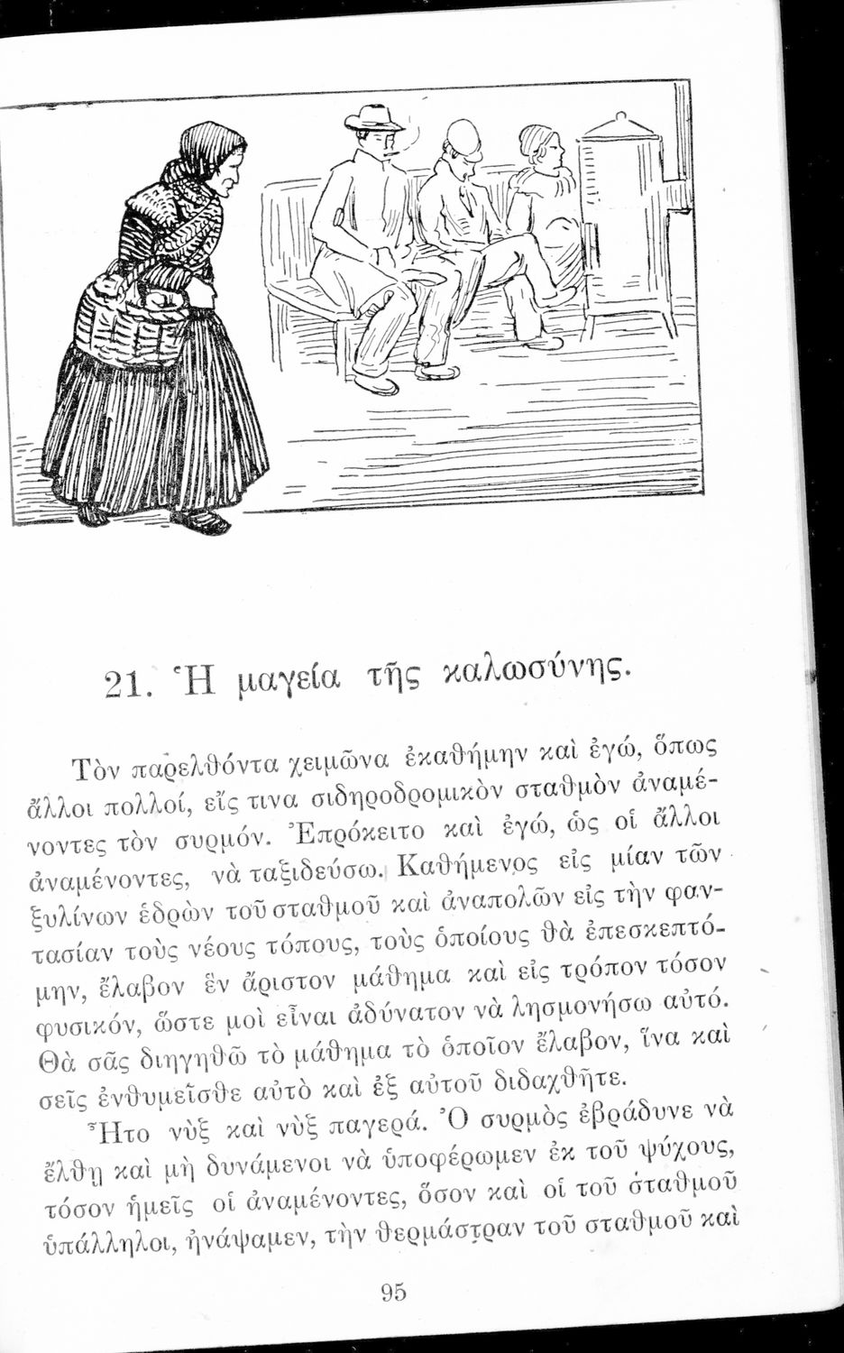 Βαθμίδα εκπαίδευσης: Πρωτοβάθμια Τάξη: ΣΤ' Δημοτικού Μάθημα: Νέα Ελληνικά Γλώσσα: Καθαρεύουσα Παρουσίαση περιεχομένου: Αναγνωστικό ΣΤ΄ Δημοτικού που περιλαμβάνει πεζά γραμμένα σε καθαρεύουσα και ποιήματα σε δημοτική εμπνευσμένα από την οικογένεια, τη θρησκεία, την πατρίδα, την ελληνική φύση και ύπαιθρο, την αγάπη για τα ζώα, τις καθημερινές ασχολίες και επαγγέλματα και τις ηθικές αρετές. |