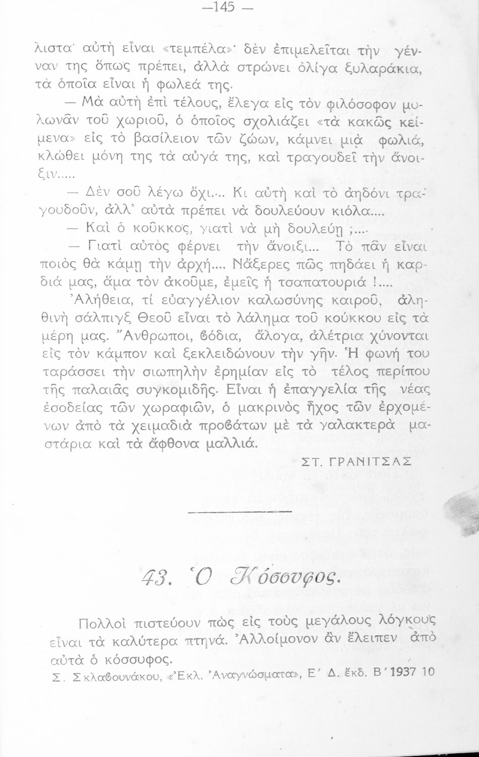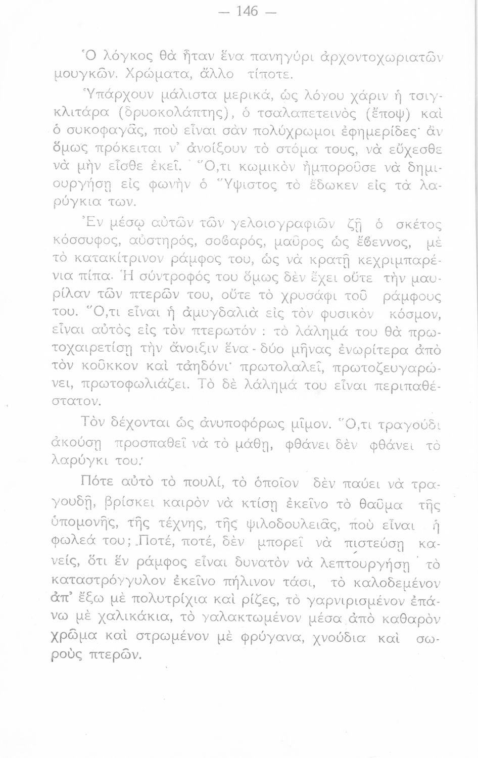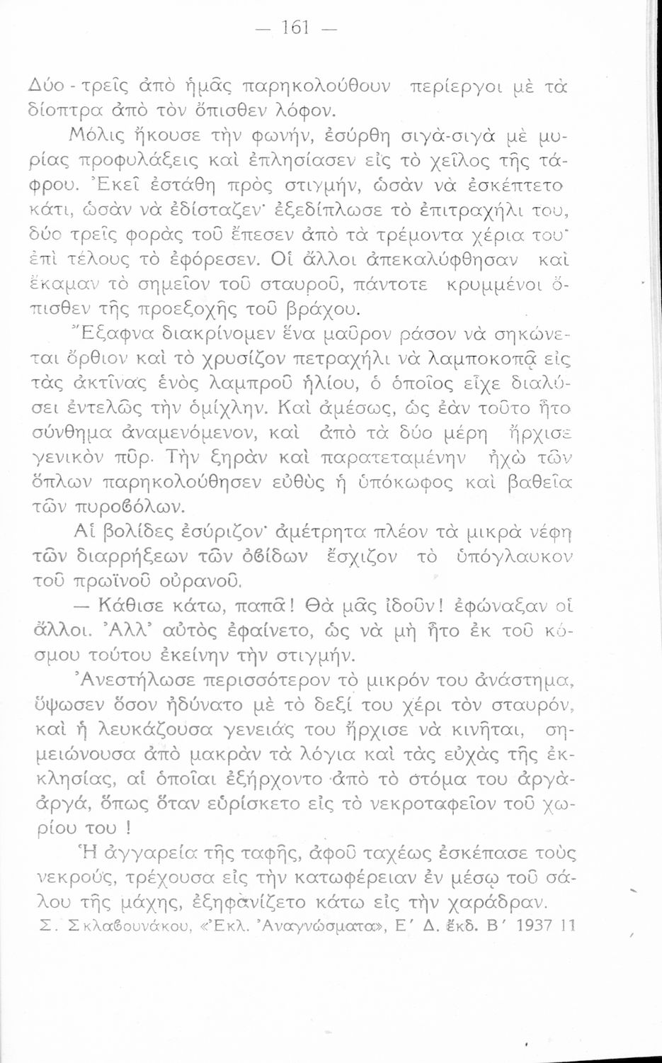 Αναγνωστικό Ε΄ Δημοτικού που αποτελείται από πεζά γραμμένα σε καθαρεύουσα και ποιήματα σε δημοτική εμπνευσμένα από την οικογένεια, τη θρησκεία, την μυθολογία και ιστορία, την υγιεινή, την πατρίδα, την ελληνική