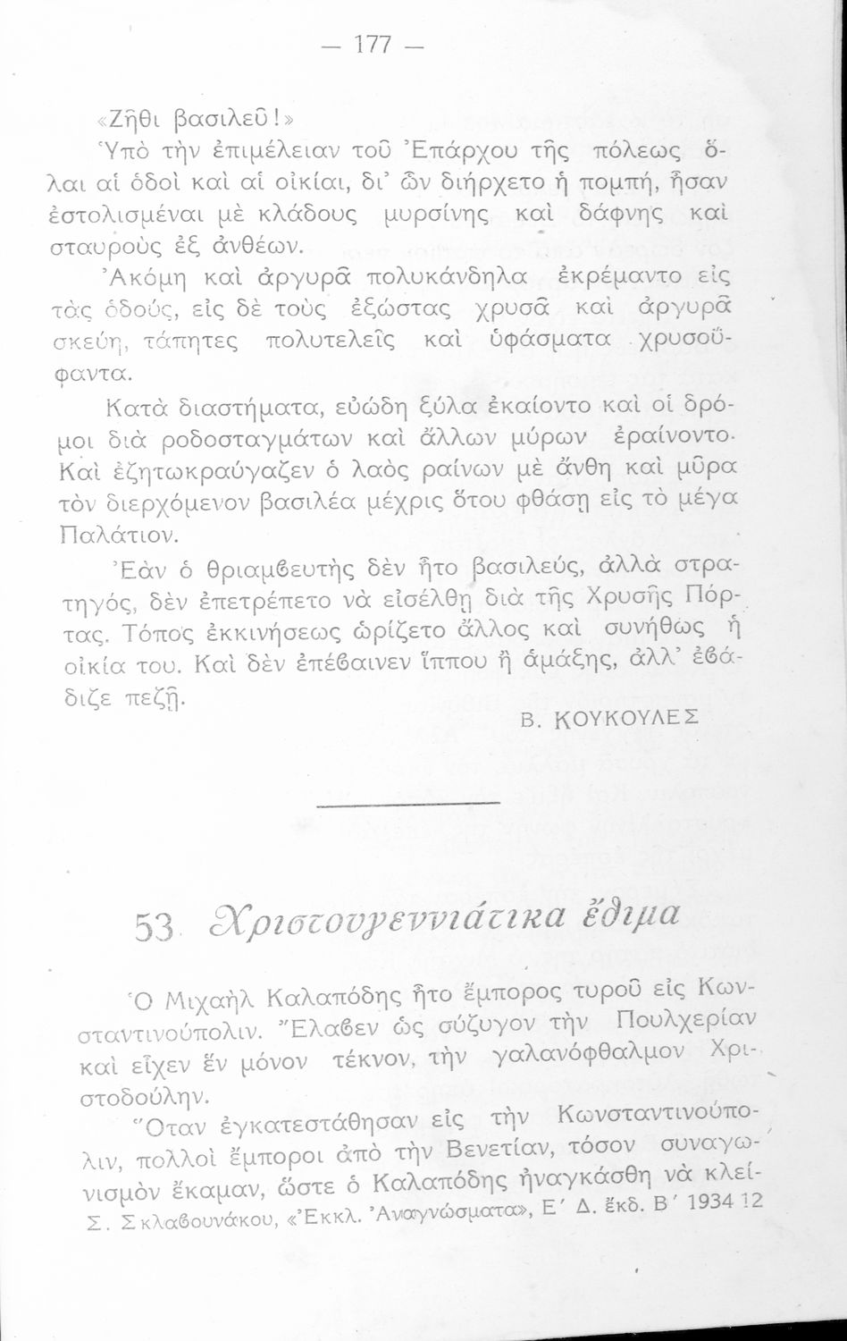 LDR 01599 2200217 4500 035 ## _a20-E0346 040 ## _aΚΕΝΕΚ - Εταιρεία Σπουδών Νεοελληνικού Πολιτισμού και Παιδείας 041 ## _ael 100 ## _aΣτέλλα Σκλαβουνάκου 110 ## _aE0346 245 0# _aΕκλεκτά αναγνώσματα. Αναγνωστικόν Ε΄ Δημοτικού 250 ## _a4η Έκδοση 260 ## _aΑθήνα _bΙωάννης Ν. Σιδέρης _c1937 300 ## _a266 _bΕξώφυλλο (έγχρωμο), Σκίτσα (ασπρόμαυρα) _c19 520 ## _aΑναγνωστικό Ε΄ Δημοτικού που αποτελείται από πεζά γραμμένα σε καθαρεύουσα και ποιήματα σε δημοτική εμπνευσμένα από την οικογένεια, τη θρησκεία, την μυθολογία και ιστορία, την υγιεινή, την πατρίδα, την ελληνική φύση, την αγάπη για τα ζώα, τις καθημερινές ασχολίες και επαγγέλματα και τις ηθικές αρετές. 521 ## _aΕ' Δημοτικού 522 ## _aΕλλάδα 546 ## _aΑπλή καθαρεύουσα / Δημοτική 563 ## _aΜαλακό Εξώφυλλο 583 ## _a51231,51232/20-8-1934 _c1934 650 #4 _aΒυζαντινή κληρονομιά _aΕλληνική μυθολογία _aΖώα _aΉθη και έθιμα _aΘρησκευτική παράδοση _aΟικογένεια _aΤαξίδια _aΥγιεινή