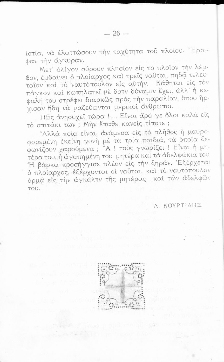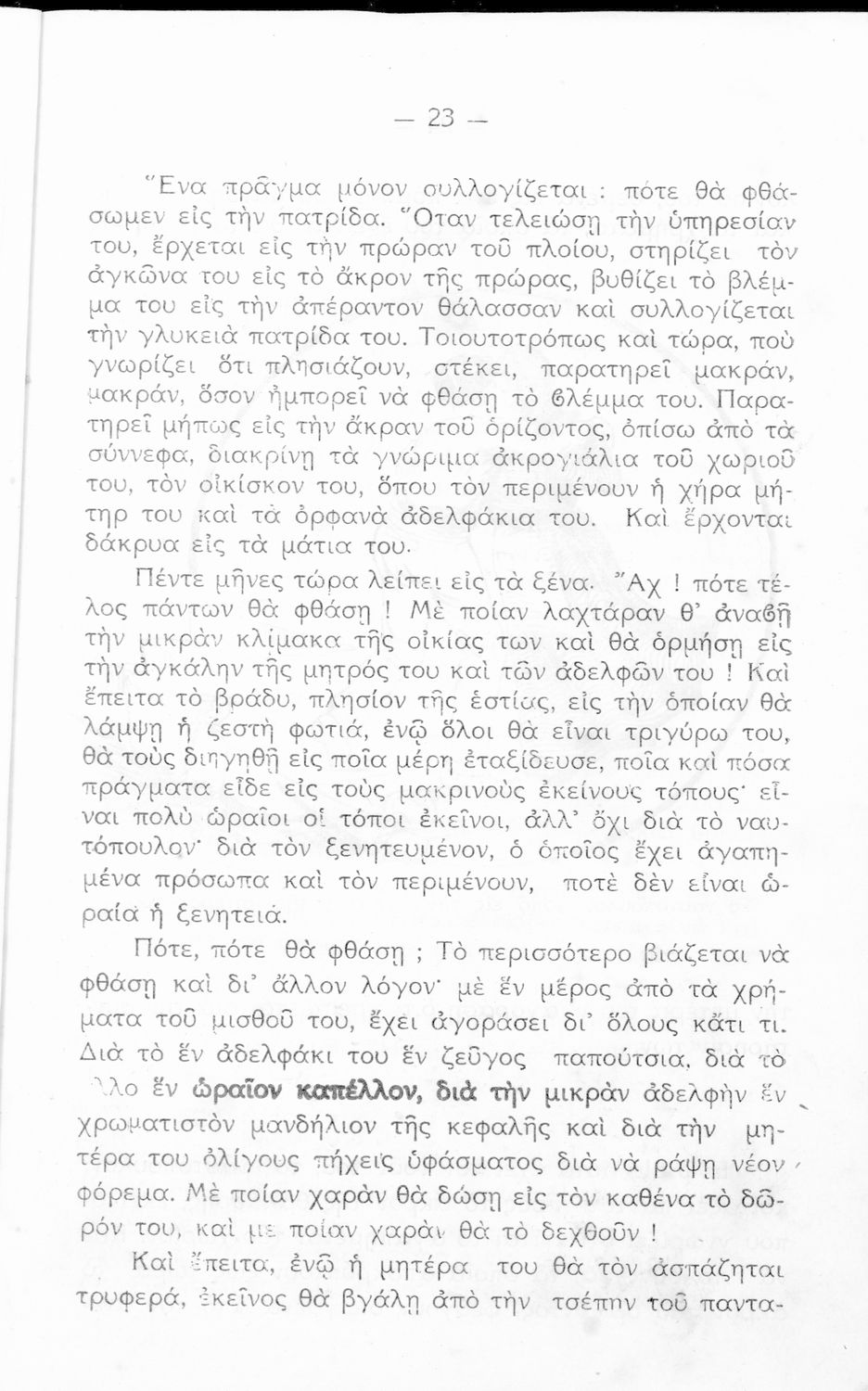 Αναγνωστικό Ε΄ Δημοτικού που αποτελείται από πεζά γραμμένα σε καθαρεύουσα και ποιήματα σε δημοτική εμπνευσμένα από την οικογένεια, τη θρησκεία, την μυθολογία και ιστορία, την υγιεινή, την πατρίδα, την ελληνική φύση, την αγάπη για τα ζώα, τις καθημερινές ασχολίες και επαγγέλματα και τις ηθικές αρετές.