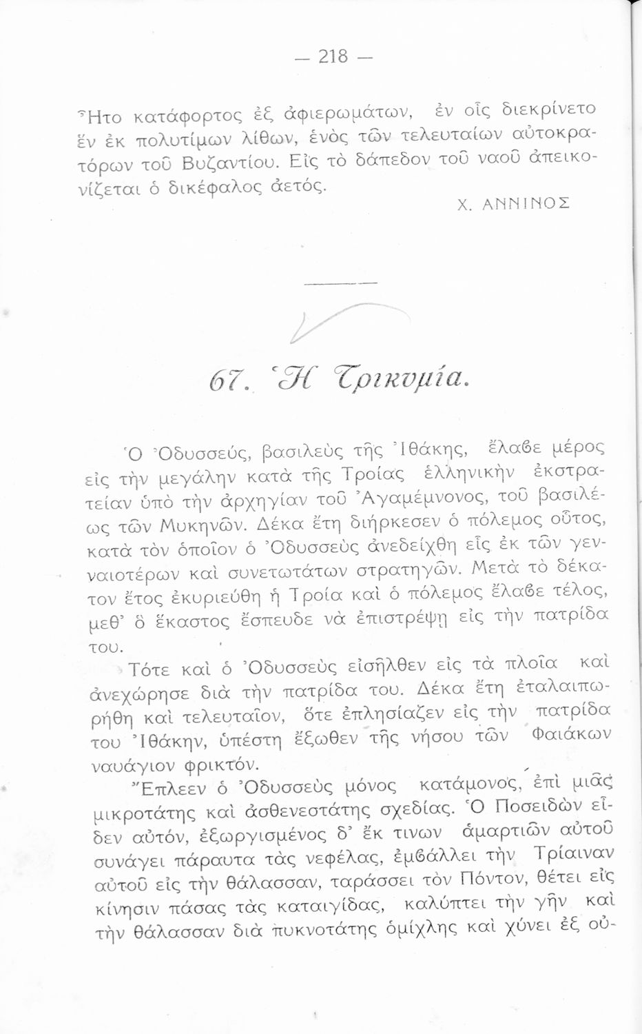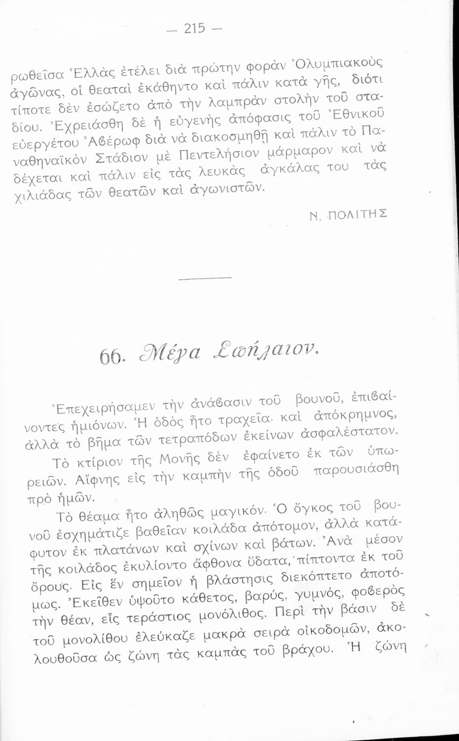 520 ## _aΑναγνωστικό Ε΄ Δημοτικού που αποτελείται από πεζά γραμμένα σε καθαρεύουσα και ποιήματα σε δημοτική εμπνευσμένα από την οικογένεια, τη θρησκεία, την μυθολογία και ιστορία, την υγιεινή, την πατρίδα, την ελληνική φύση, την αγάπη για τα ζώα, τις καθημερινές ασχολίες και επαγγέλματα και τις ηθικές αρετές.