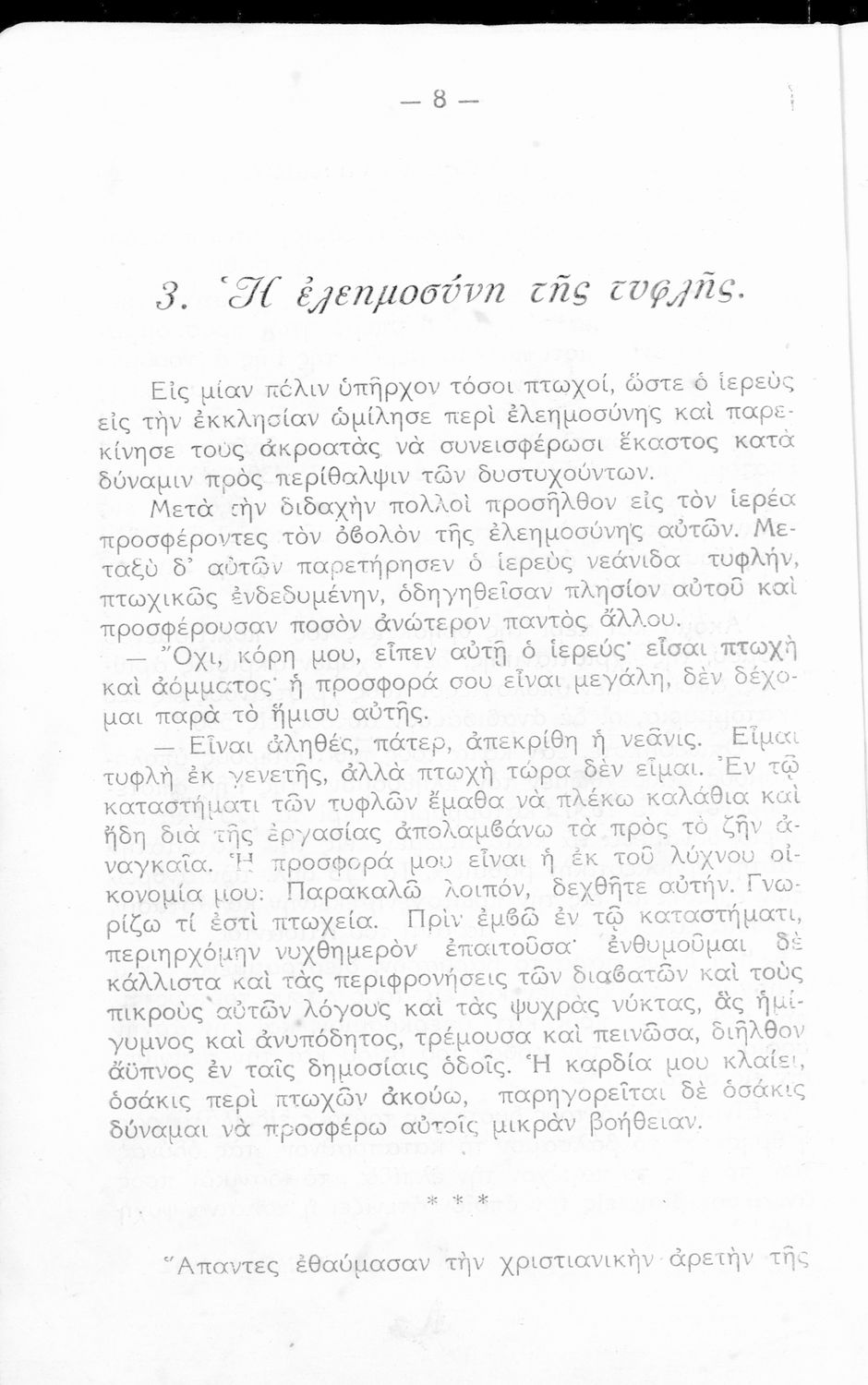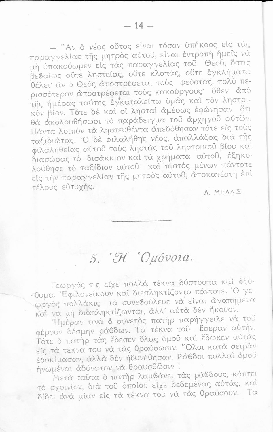 Αναγνωστικό Ε΄ Δημοτικού που αποτελείται από πεζά γραμμένα σε καθαρεύουσα και ποιήματα σε δημοτική εμπνευσμένα από την οικογένεια, τη θρησκεία, την μυθολογία και ιστορία, την υγιεινή, την πατρίδα, την ελληνική φύση, την αγάπη για τα ζώα, τις καθημερινές ασχολίες και επαγγέλματα και τις ηθικές αρετές.