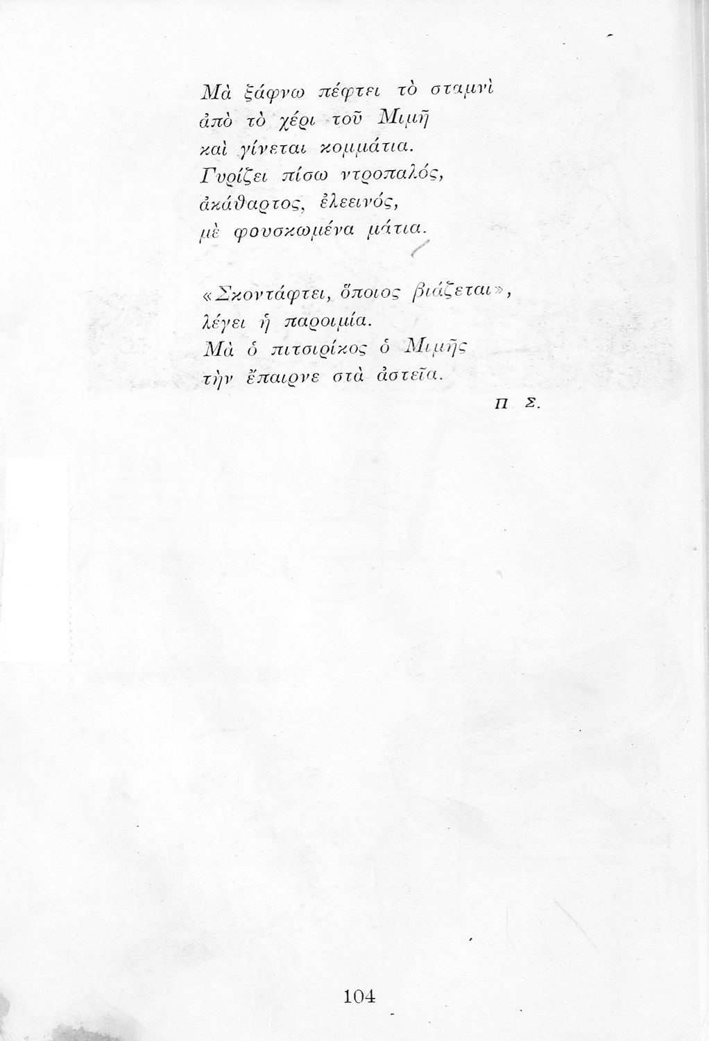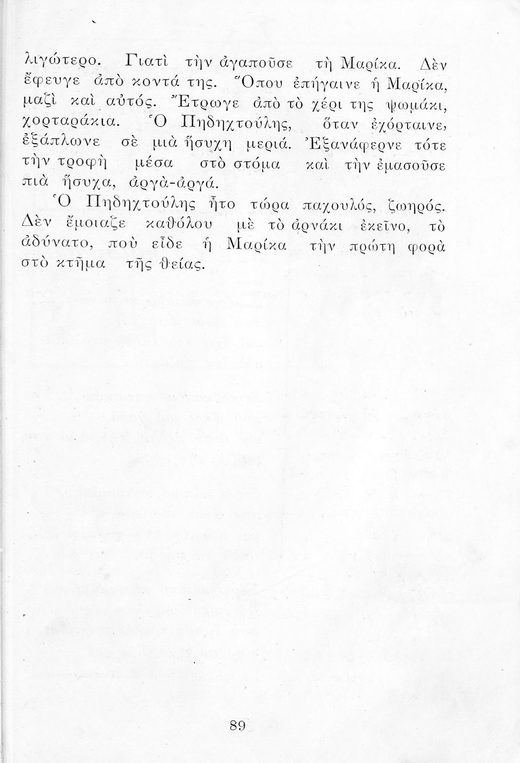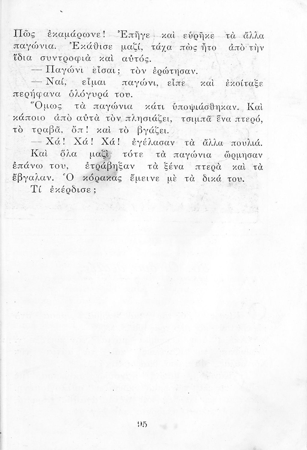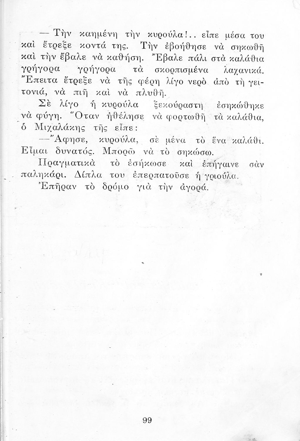 Αναγνωστικό Β΄ Δημοτικού που αποτελείται από πεζά γραμμένα σε καθαρεύουσα και ποιήματα σε δημοτική εμπνευσμένα από την οικογένεια, τη θρησκεία, την πατρίδα, την ελληνική φύση και ύπαιθρο, την αγάπη για τα ζώα, τις καθημερινές ασχολίες και επαγγέλματα και τις ηθικές αρετές.