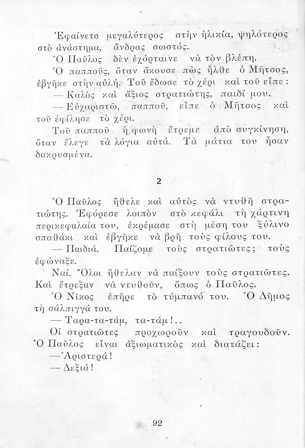 Αναγνωστικό της ΣΤ΄ Δημοτικού που κυκλοφόρησε σε 7.000 αντίτυπα 25 ημέρες πριν την 4η Αυγούστου 1936, οπότε κατά την επόμενη σχολική χρονιά διδάχτηκε ελάχιστα και η έκδοσή του με αυτή την μορφή σταμάτησε.