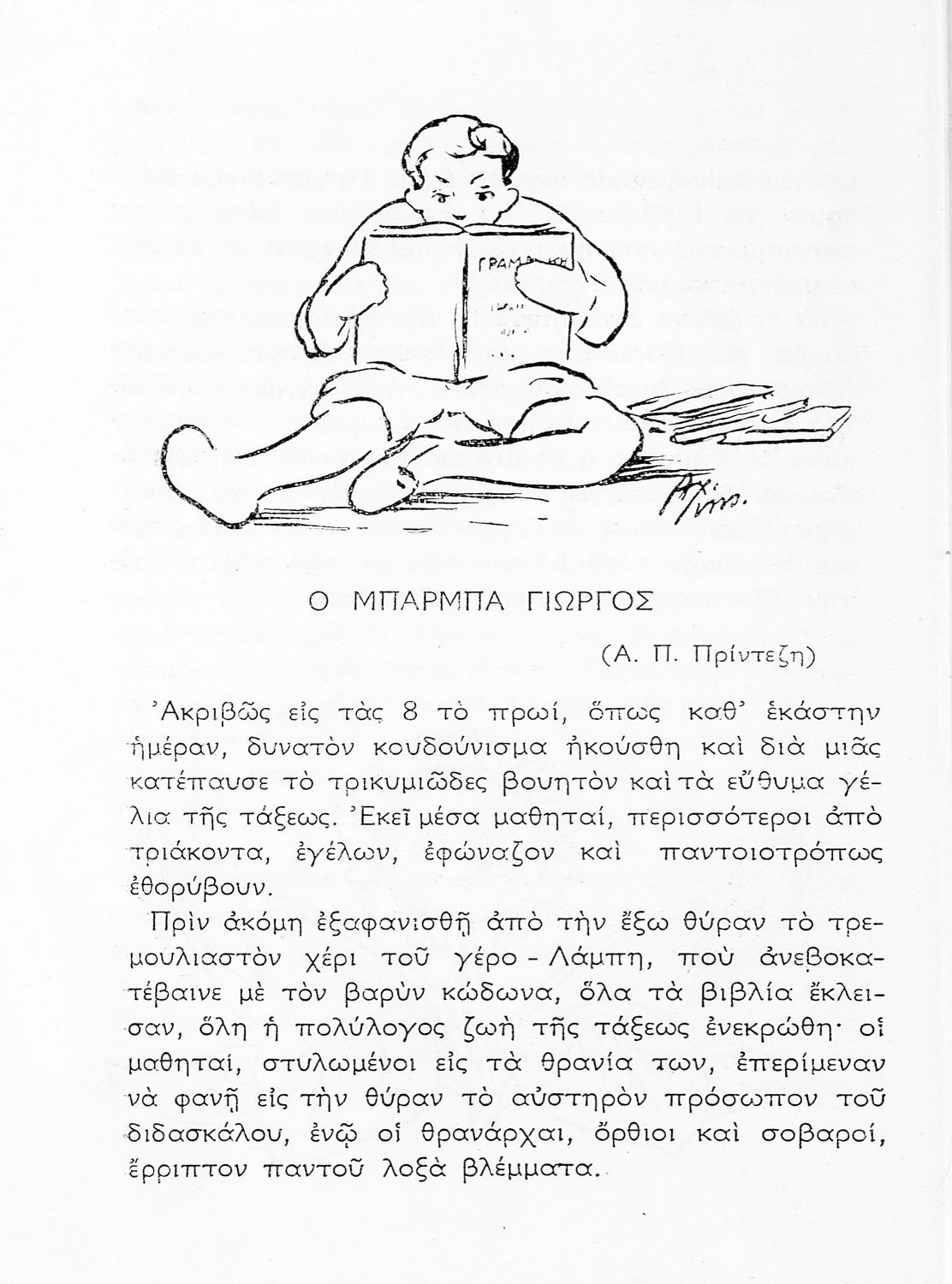 Αναγνωστικό Ε΄ Δημοτικού που περιλαμβάνει πεζογραφήματα εμπνευσμένα από την ελληνική φύση, την αγροτική ζωή και από το τρίπτυχο "Πατρίς- θρησκεία- οικογένεια".