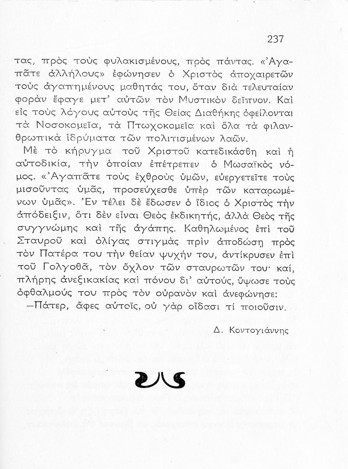 Το σύγγραμμα ήταν μαθητικό βοήθημα για το μάθημα των Θρησκευτικών. Περιέχει κείμενο, σχόλια των Ευαγγελίων