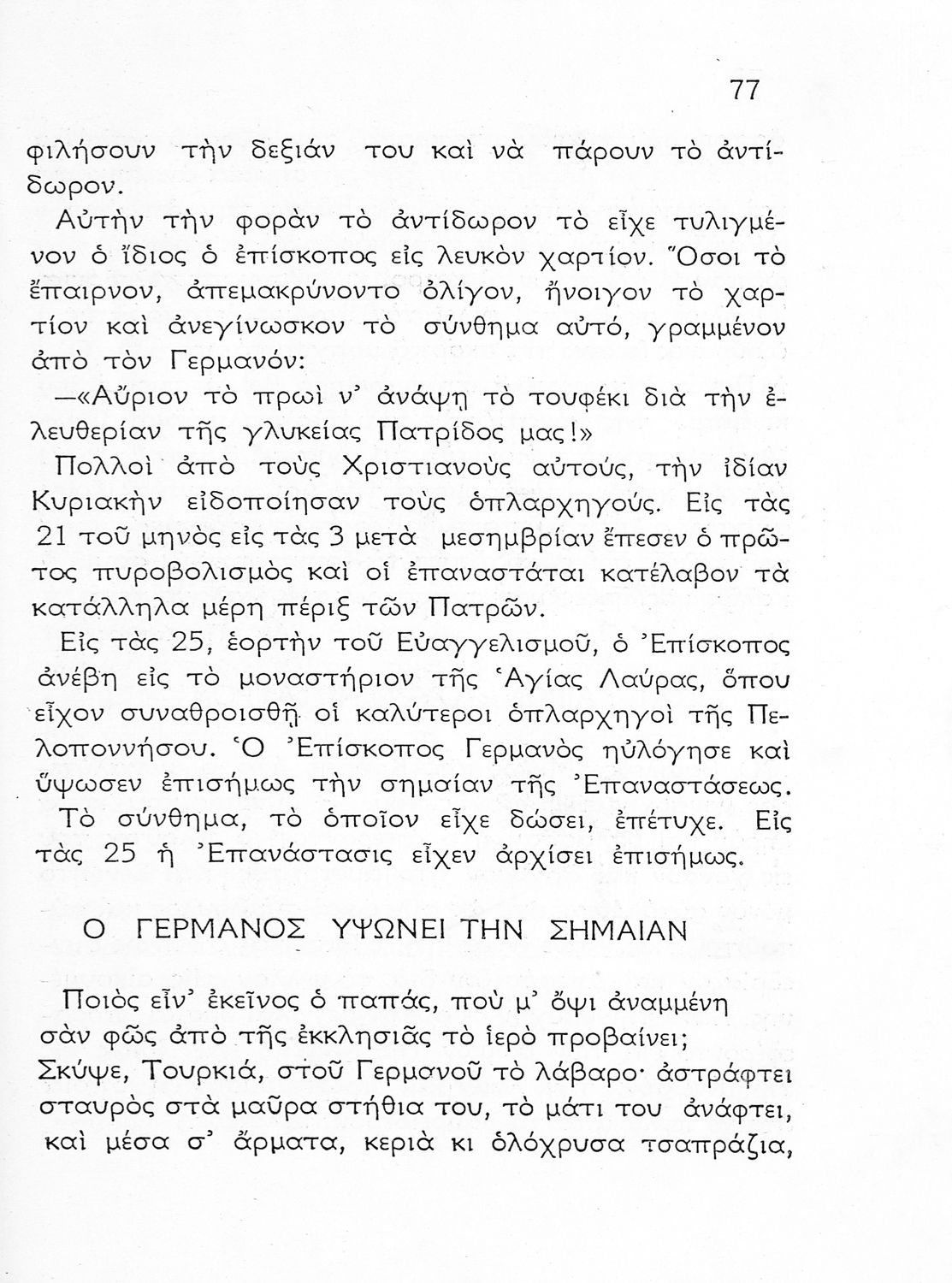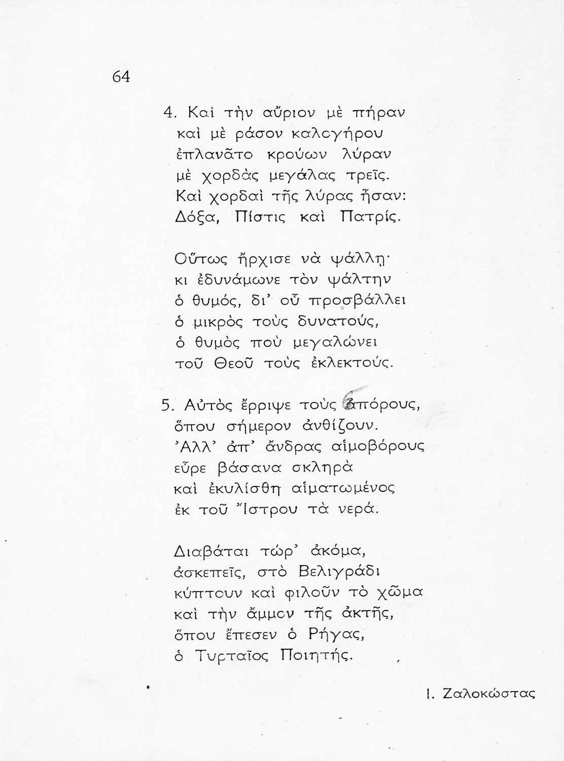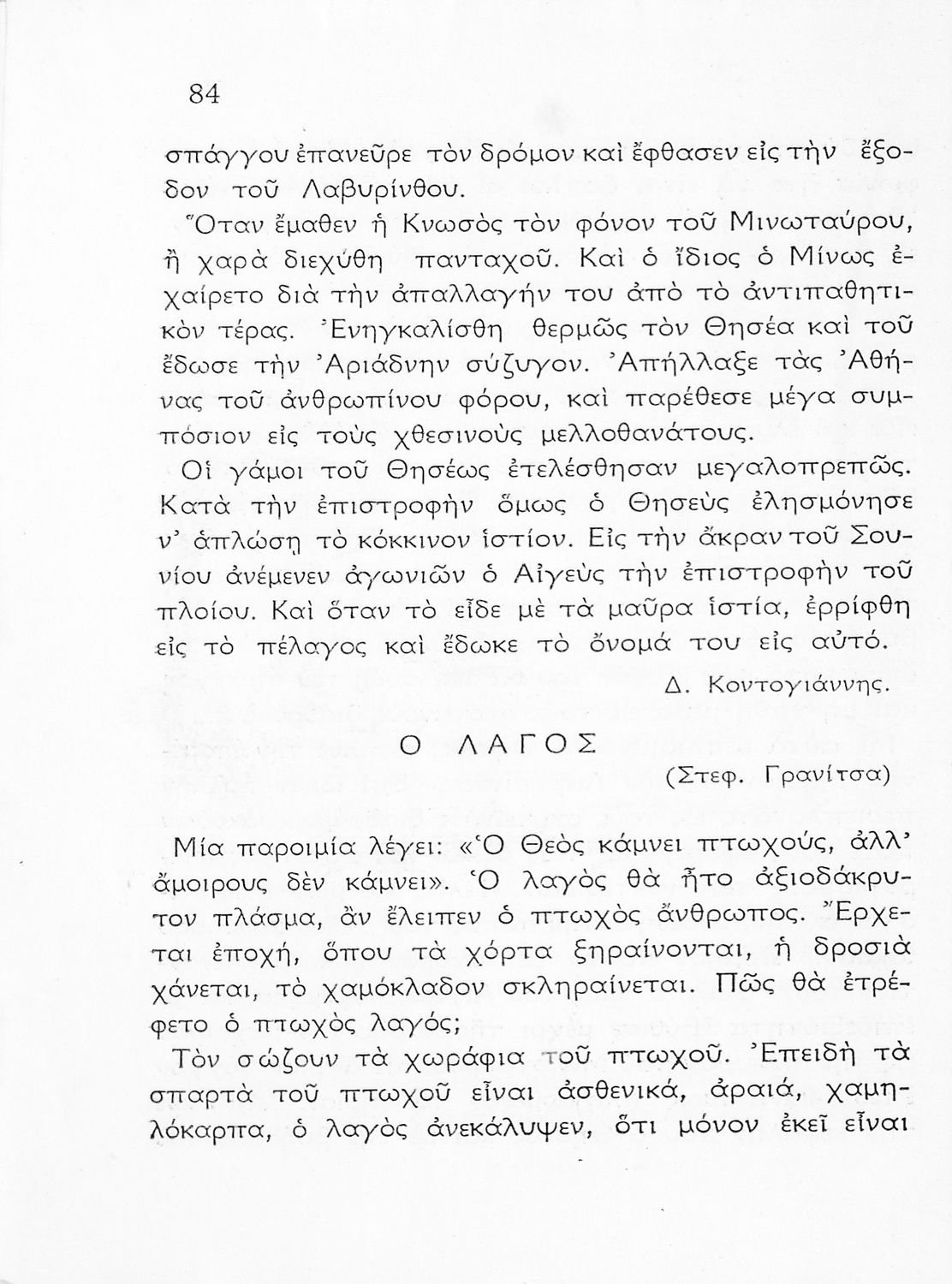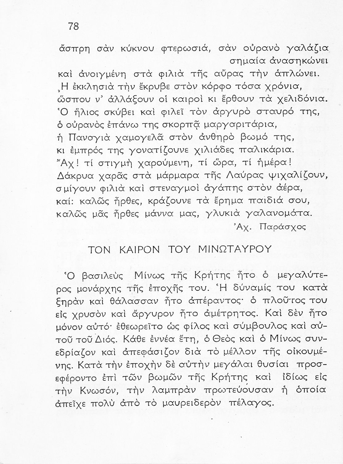 Αναγνωστικό ΣΤ΄ Δημοτικού που αποτελείται από πεζά γραμμένα σε καθαρεύουσα και ποιήματα σε δημοτική εμπνευσμένα από την οικογένεια, τη θρησκεία, την μυθολογία και ιστορία, την υγιεινή, την πατρίδα, την ελληνική φύση, την αγάπη για τα ζώα, τις καθημερινές ασχολίες και επαγγέλματα και τις ηθικές αρετές.
