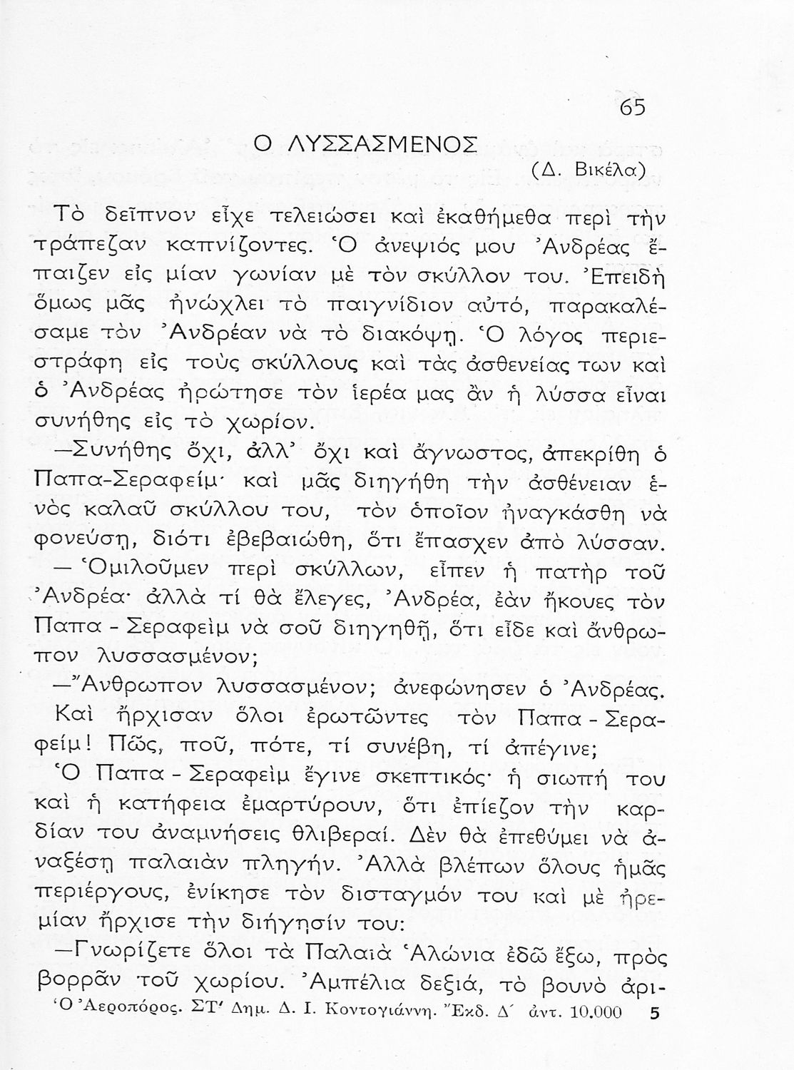Αναγνωστικό Ε΄ Δημοτικού που περιλαμβάνει πεζογραφήματα εμπνευσμένα από την ελληνική φύση, την αγροτική ζωή και από το τρίπτυχο "Πατρίς- θρησκεία- οικογένεια".