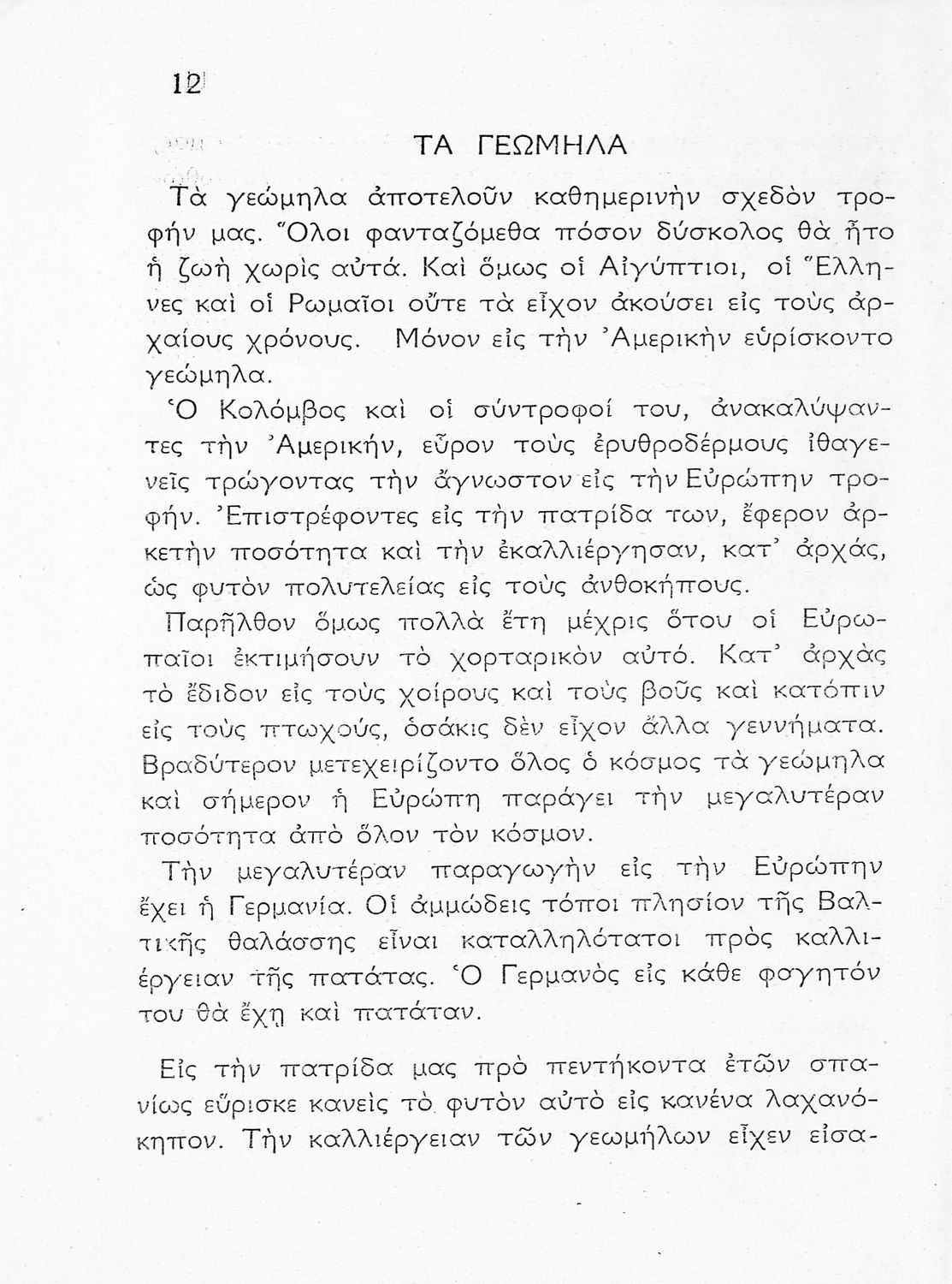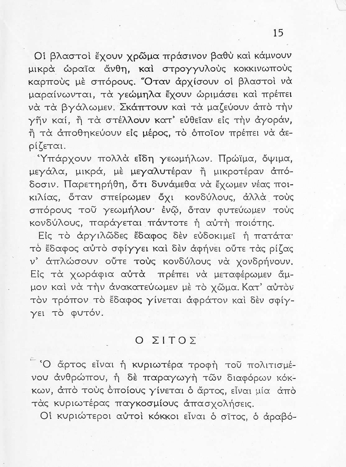 Αναγνωστικό Ε΄ Δημοτικού που περιλαμβάνει πεζογραφήματα εμπνευσμένα από την ελληνική φύση, την αγροτική ζωή και από το τρίπτυχο "Πατρίς- θρησκεία- οικογένεια".