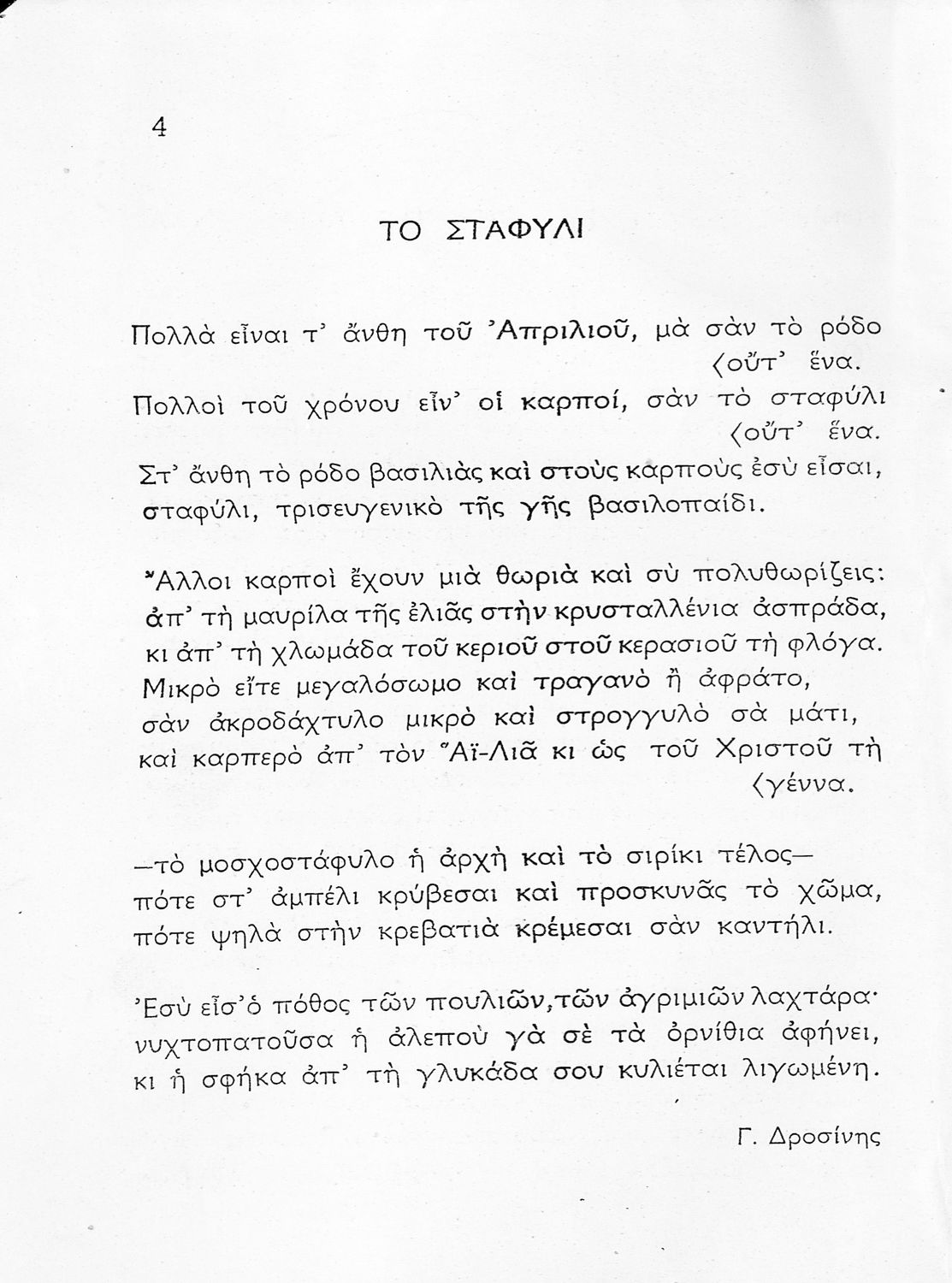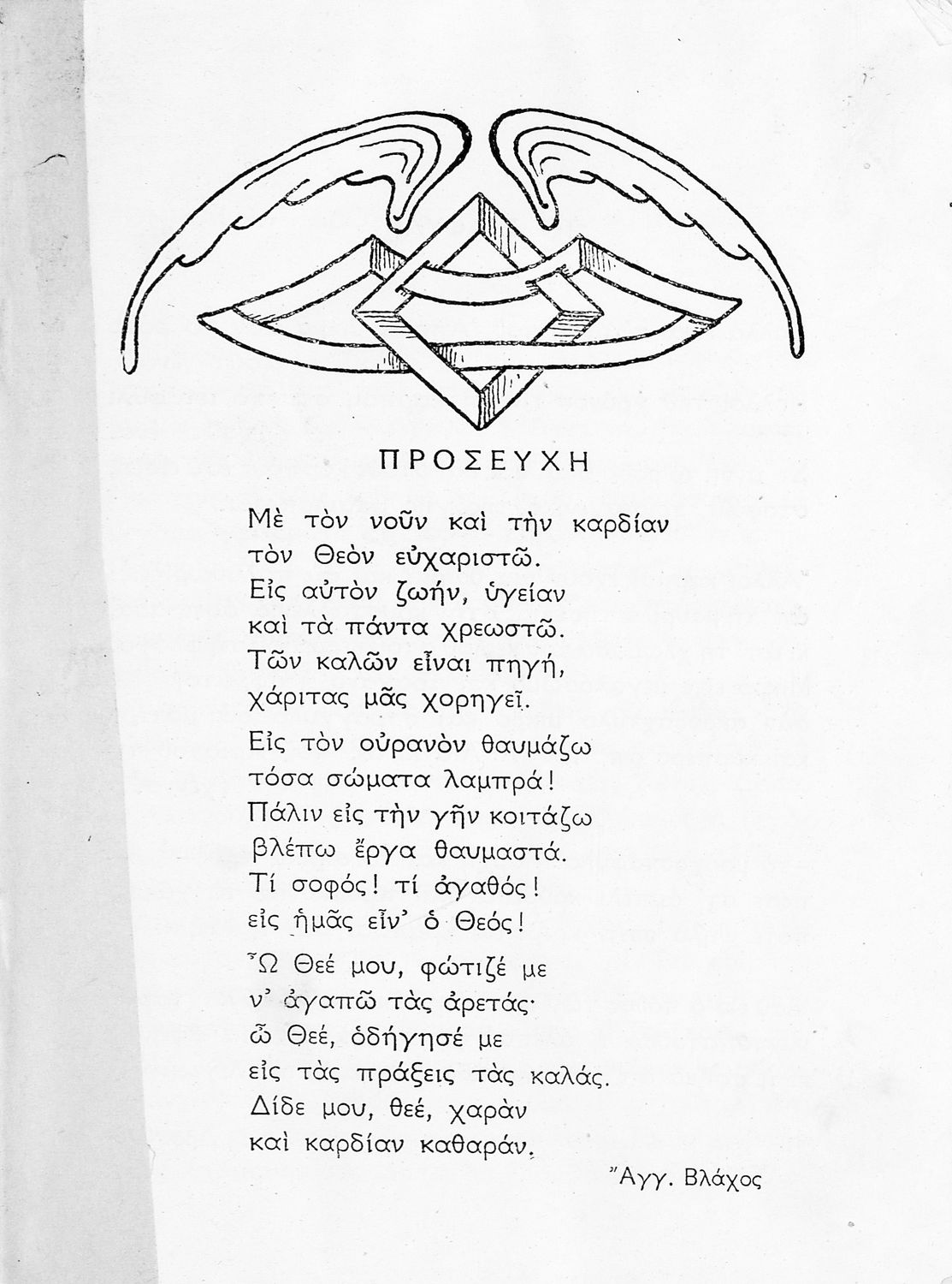 Αναγνωστικό ΣΤ΄ Δημοτικού που αποτελείται από πεζά γραμμένα σε καθαρεύουσα και ποιήματα σε δημοτική εμπνευσμένα από την οικογένεια, τη θρησκεία, την μυθολογία και ιστορία, την υγιεινή, την πατρίδα, την ελληνική φύση, την αγάπη για τα ζώα, τις καθημερινές ασχολίες και επαγγέλματα και τις ηθικές αρετές.