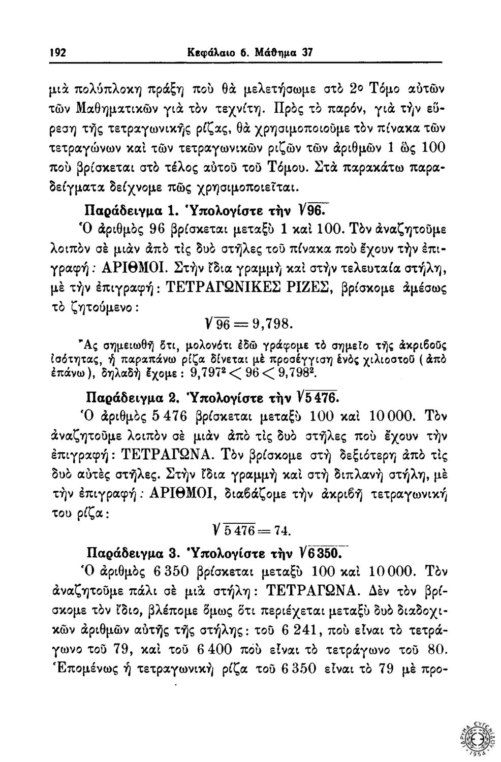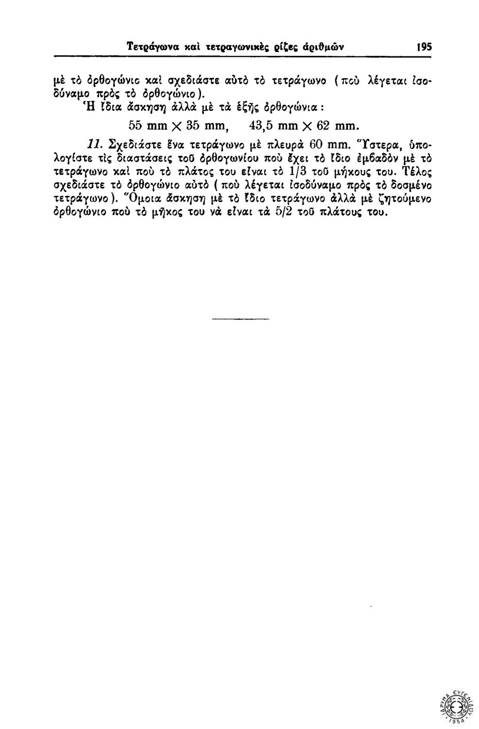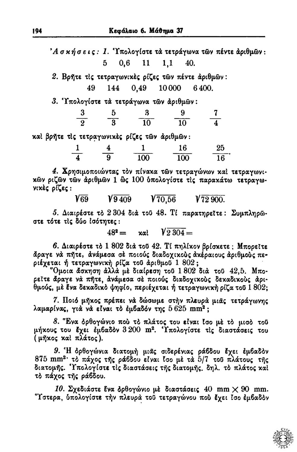 520 ## _aΜε τον πρώτο αυτό τόμο από το τρίτομο διδακτικό σύγγραμμα «Μαθηματικά για τον Τεχνίτη» εγκαινιάστηκε η σειρά εκδόσεων του Ιδρύματος Ευγενίδου για την πρώτη βαθμίδα της επαγγελματικής τεχνικής εκπαίδευσης. Ο τόμος απαρτίζεται από δύο μέρη: στο πρώτο υπενθυμίζονται κάποια βασικά πράγματα από την Αριθμητική των ακεραίων και των δεκαδικών αριθμών. Το δεύτερο, που αποτελεί και το κύριο μέρος του τόμου, είναι προσαρμογή στα Ελληνικά του «Les Mathematiques en Ire Annee d’ apprentissage», Les Editions Foucher, Paris (1950) του Rene Cluzel.