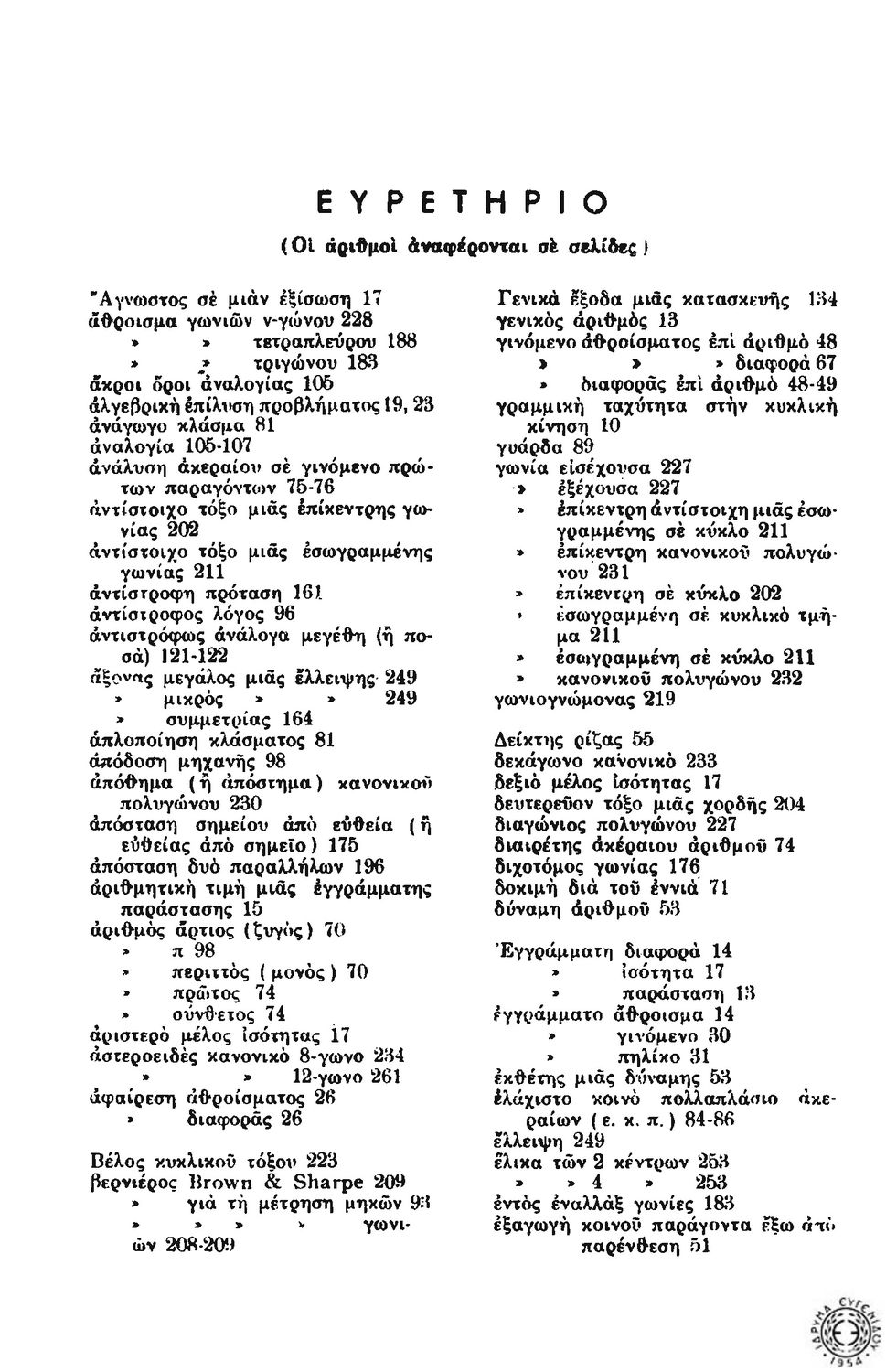 Παρουσίαση περιεχομένου: Ο δεύτερος αυτός τόμος του διδακτικού συγγράμματος «Μαθηματικά για τον τεχνίτη» είναι μια ελεύθερη προσαρμογή στα ελληνικά του γαλλικού βιβλίου «Les Mathematiques en 2e Annee d’ apprentissage» του Rene Cluzel. Απαρτίζεται από δύο μέρη: το πρώτο πραγματεύεται αριθμητικά και αλγεβρικά θέματα και το δεύτερο γεωμετρικά θέματα από την Επιπεδομετρία.
