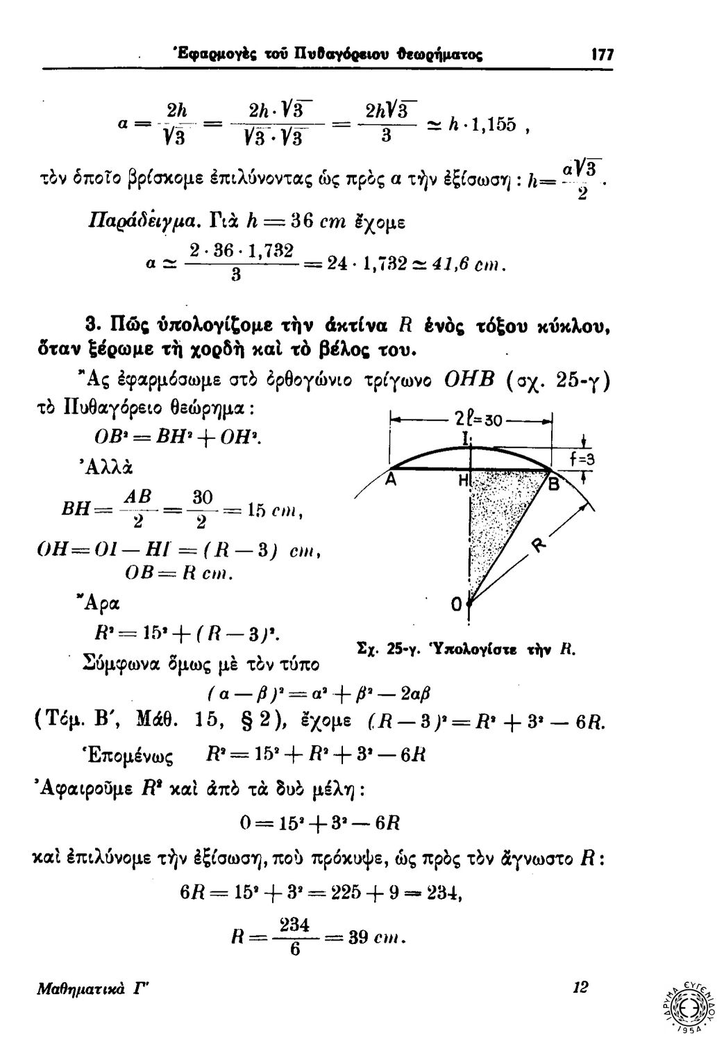 Σχολικό εγχειρίδιο Μαθηματικών Γ΄ Γυμνασίου που περιλαμβάνει θεωρία, παραδείγματα και ασκήσεις. Φέρει το σύμβολο της δικτατορίας.