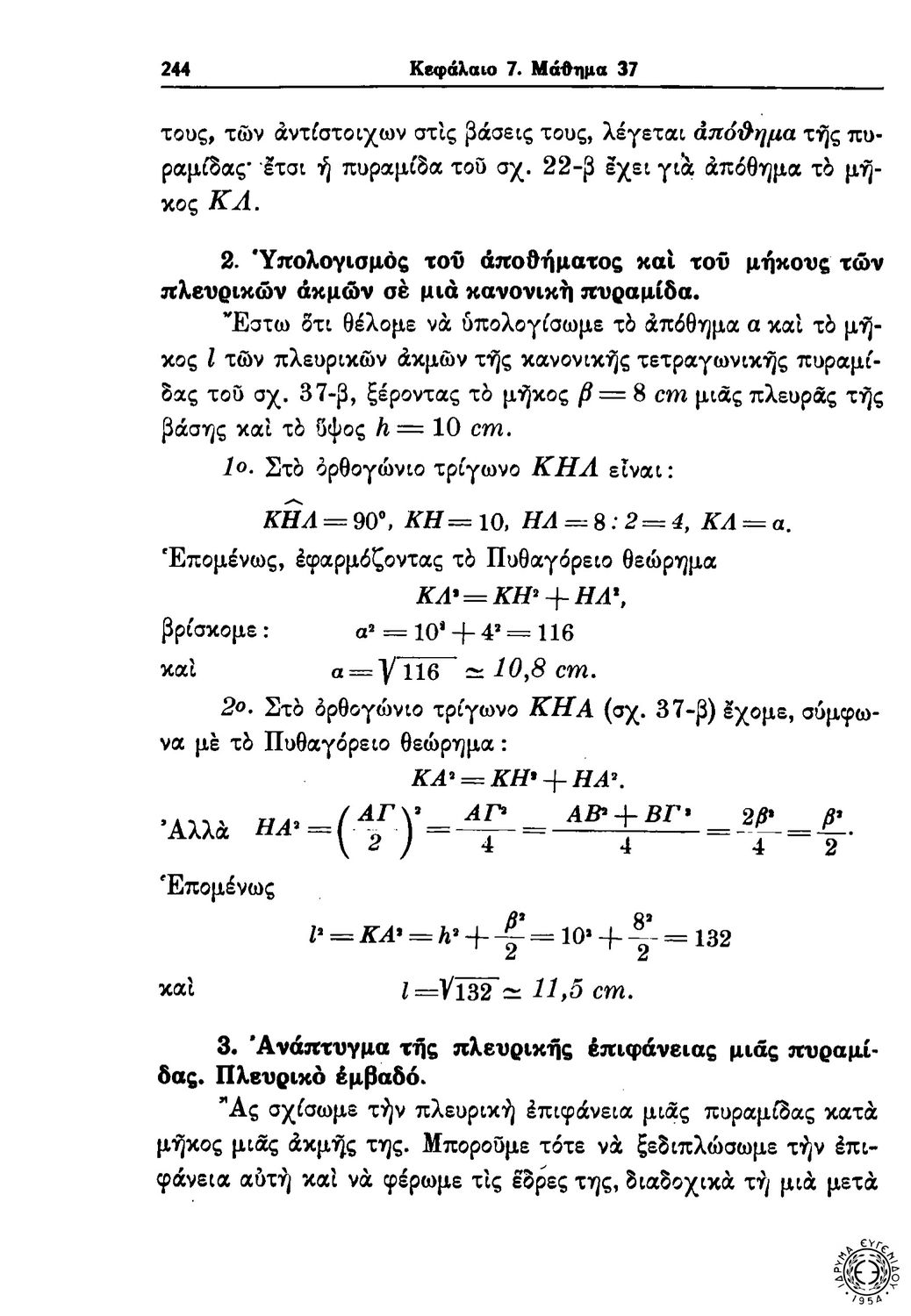 Σχολικό εγχειρίδιο Μαθηματικών Γ΄ Γυμνασίου που περιλαμβάνει θεωρία, παραδείγματα και ασκήσεις. Φέρει το σύμβολο της δικτατορίας.