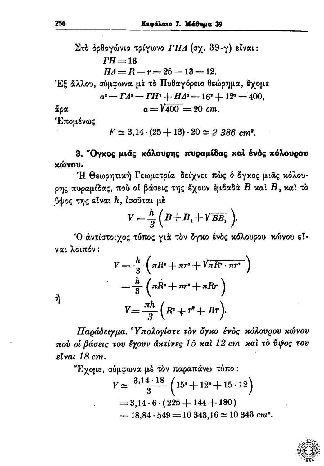 Σχολικό εγχειρίδιο Μαθηματικών Γ΄ Γυμνασίου που περιλαμβάνει θεωρία, παραδείγματα και ασκήσεις. Φέρει το σύμβολο της δικτατορίας.