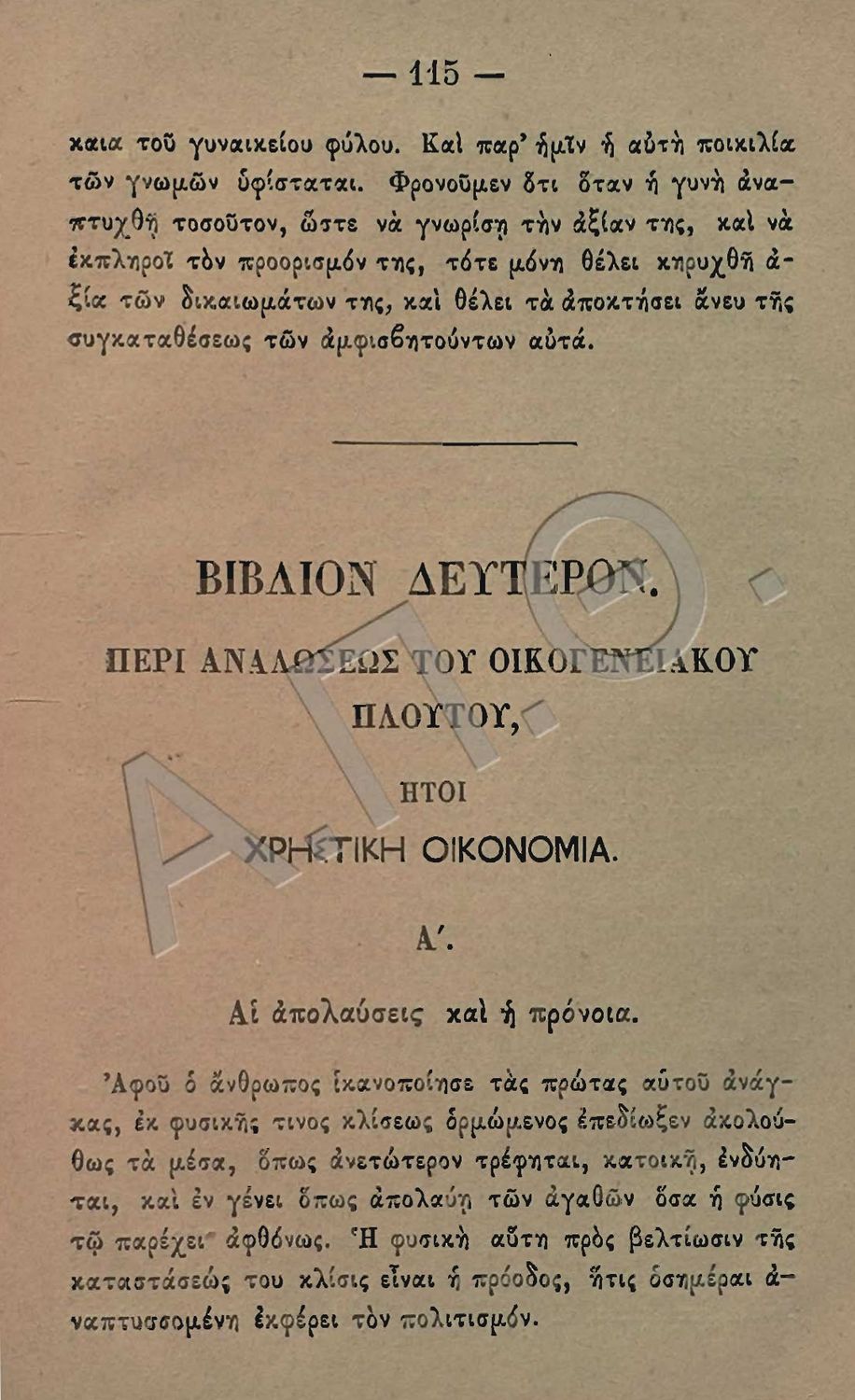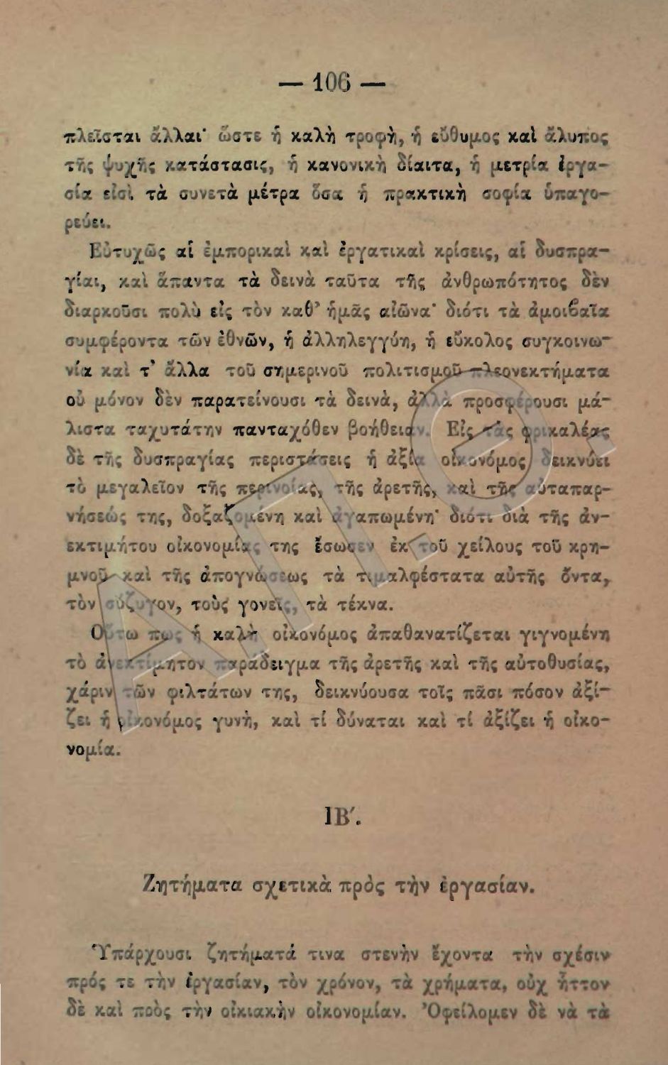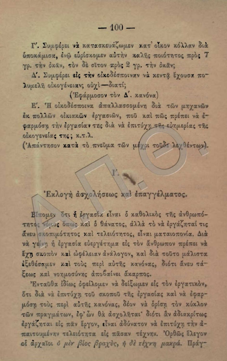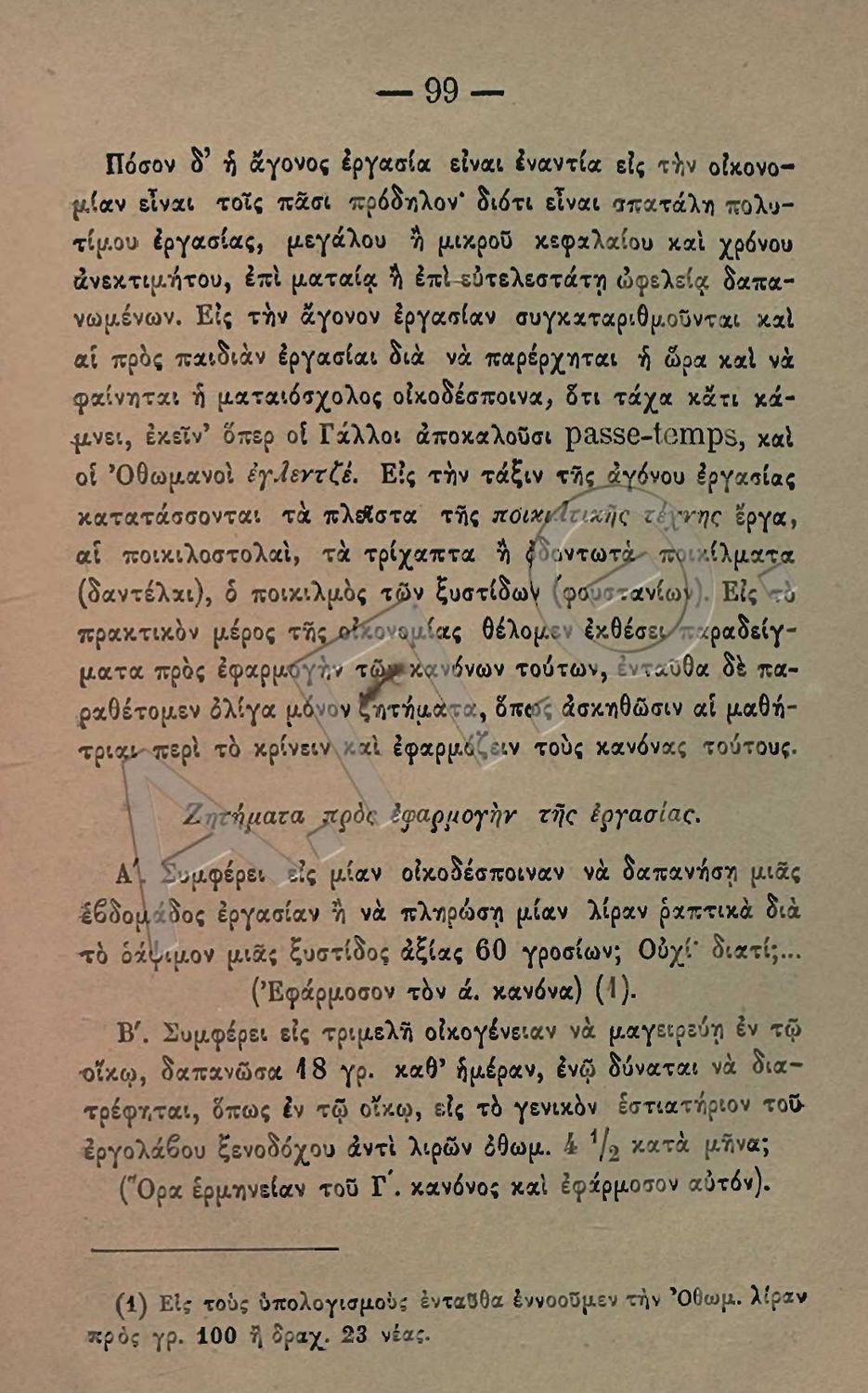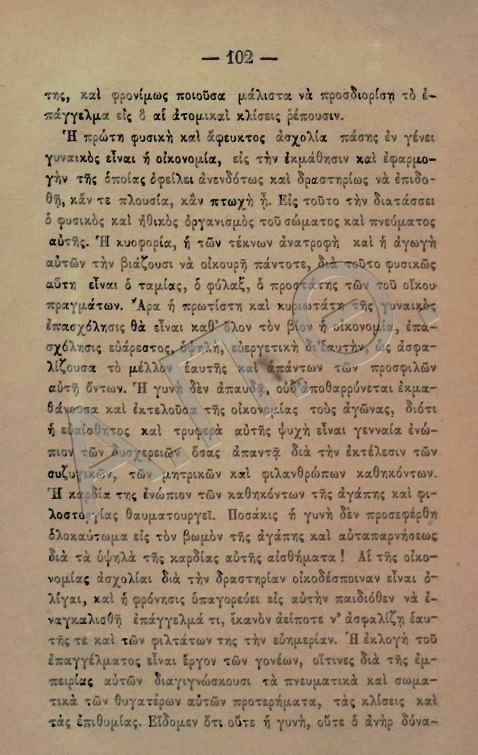 Σχολικό εγχειρίδιο για τις τάξεις του Παρθεναγωγείου για το μάθημα της Οικιακής Οικονομίας.