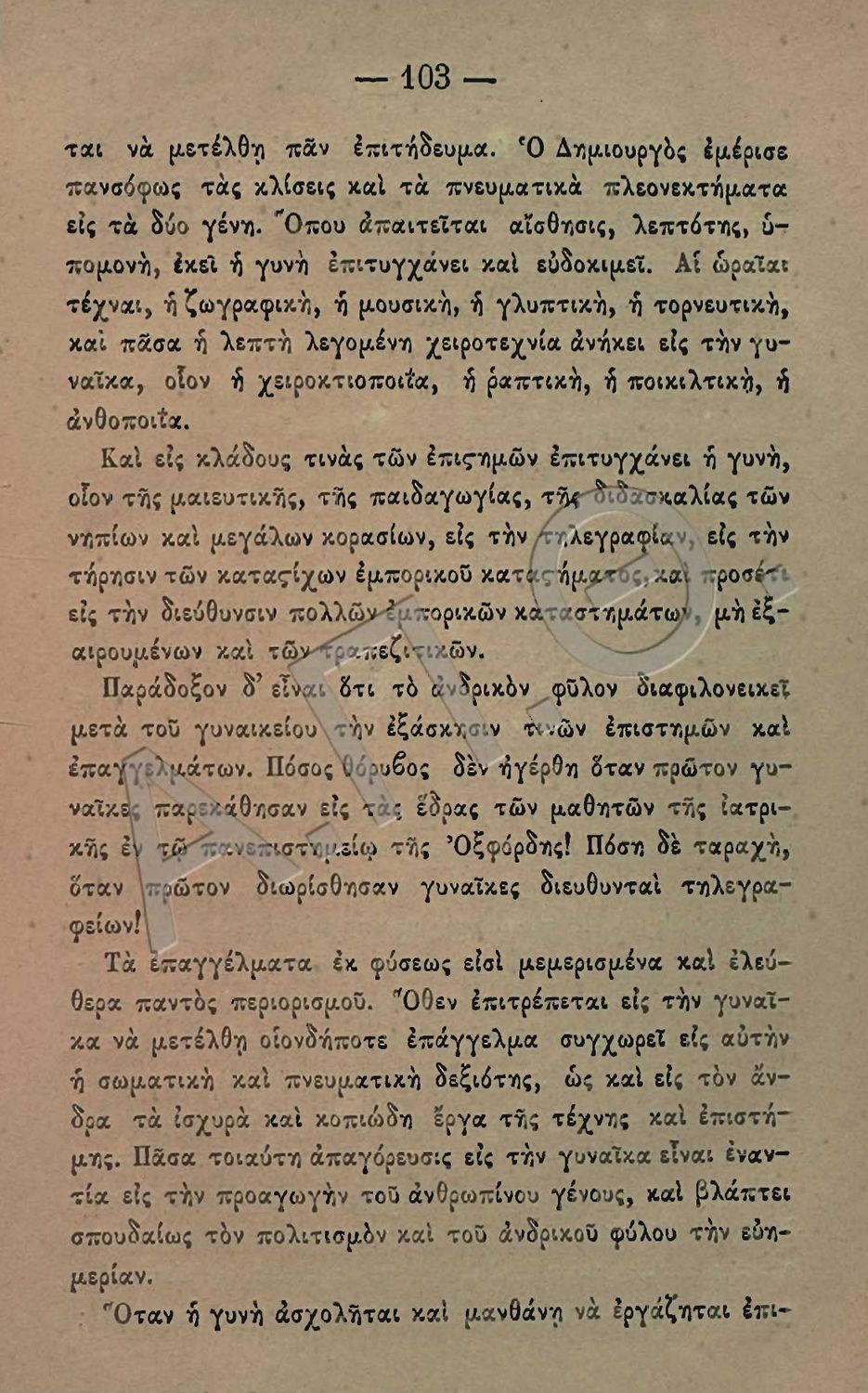 Βαθμίδα εκπαίδευσης: Δευτεροβάθμια Τάξη: Παρθεναγωγείο Μάθημα: Οικιακή Οικονομία Γλώσσα: Καθαρεύουσα Παρουσίαση περιεχομένου: Σχολικό εγχειρίδιο για τις τάξεις του Παρθεναγωγείου για το μάθημα της Οικιακής Οικονομίας. |