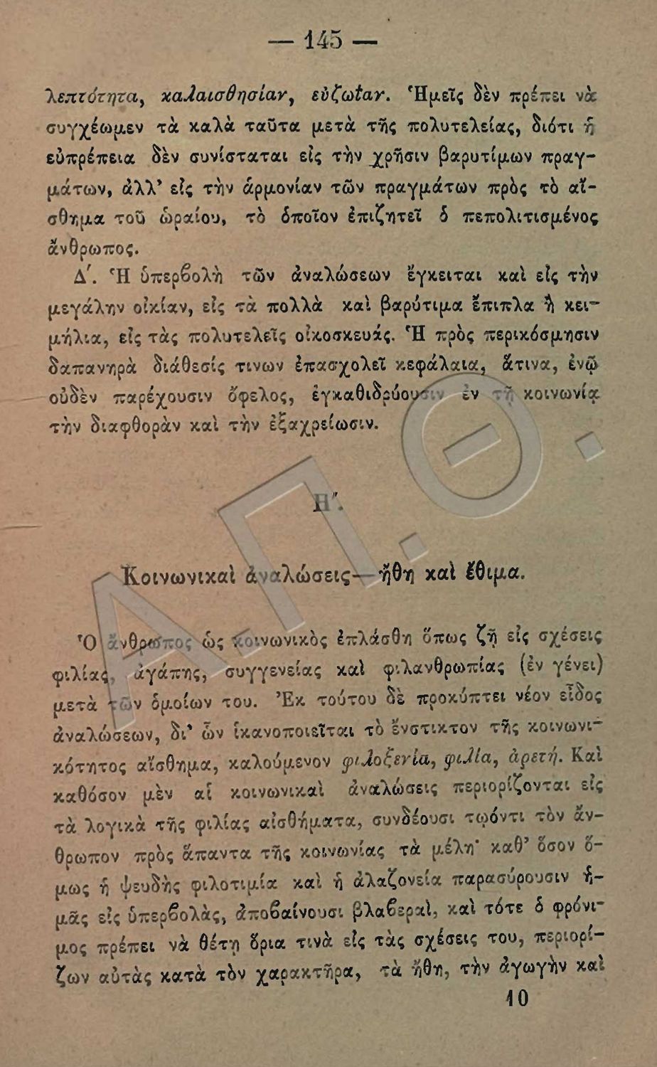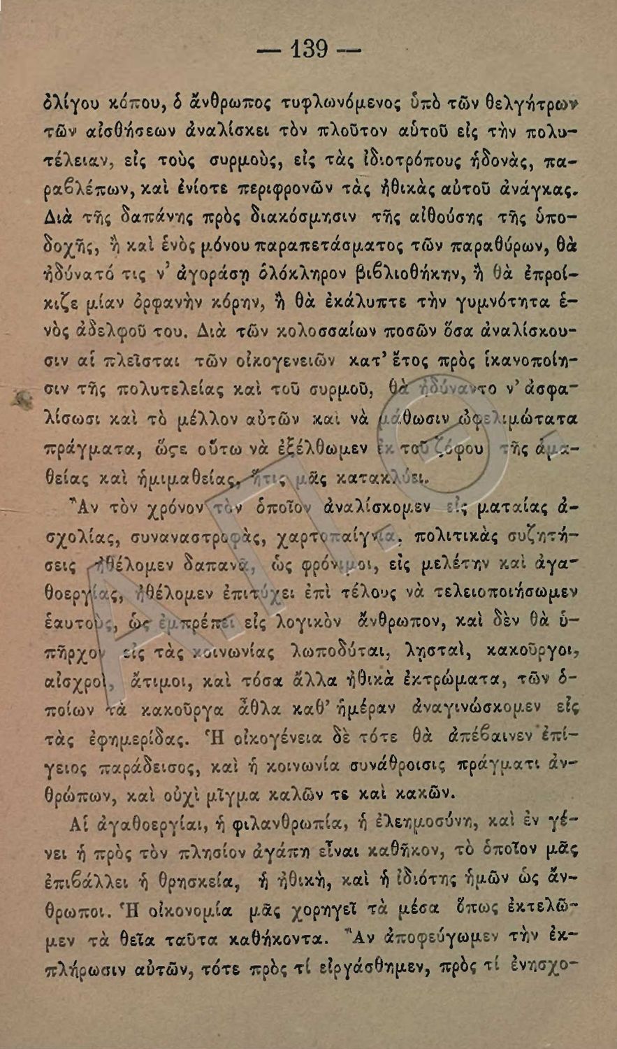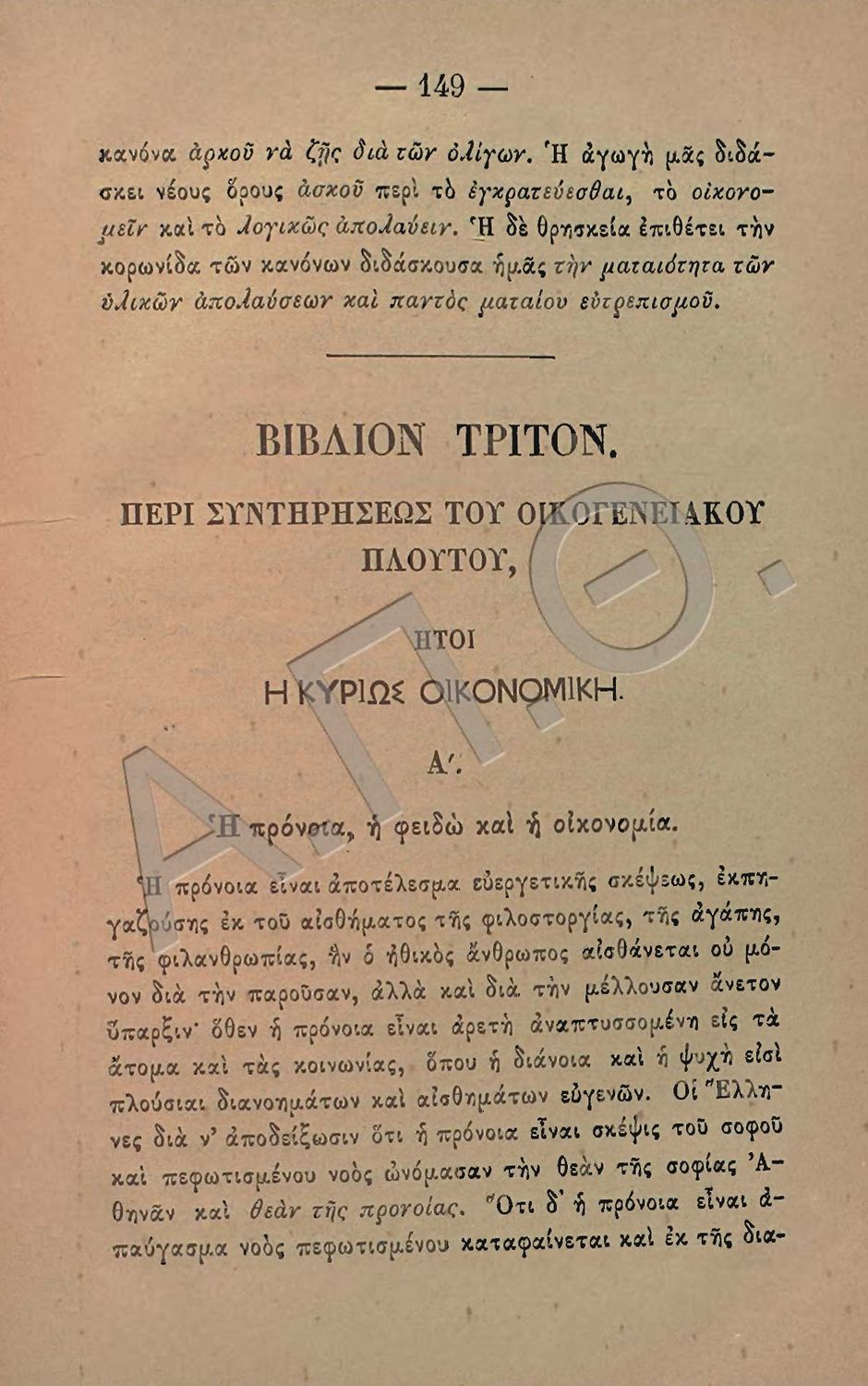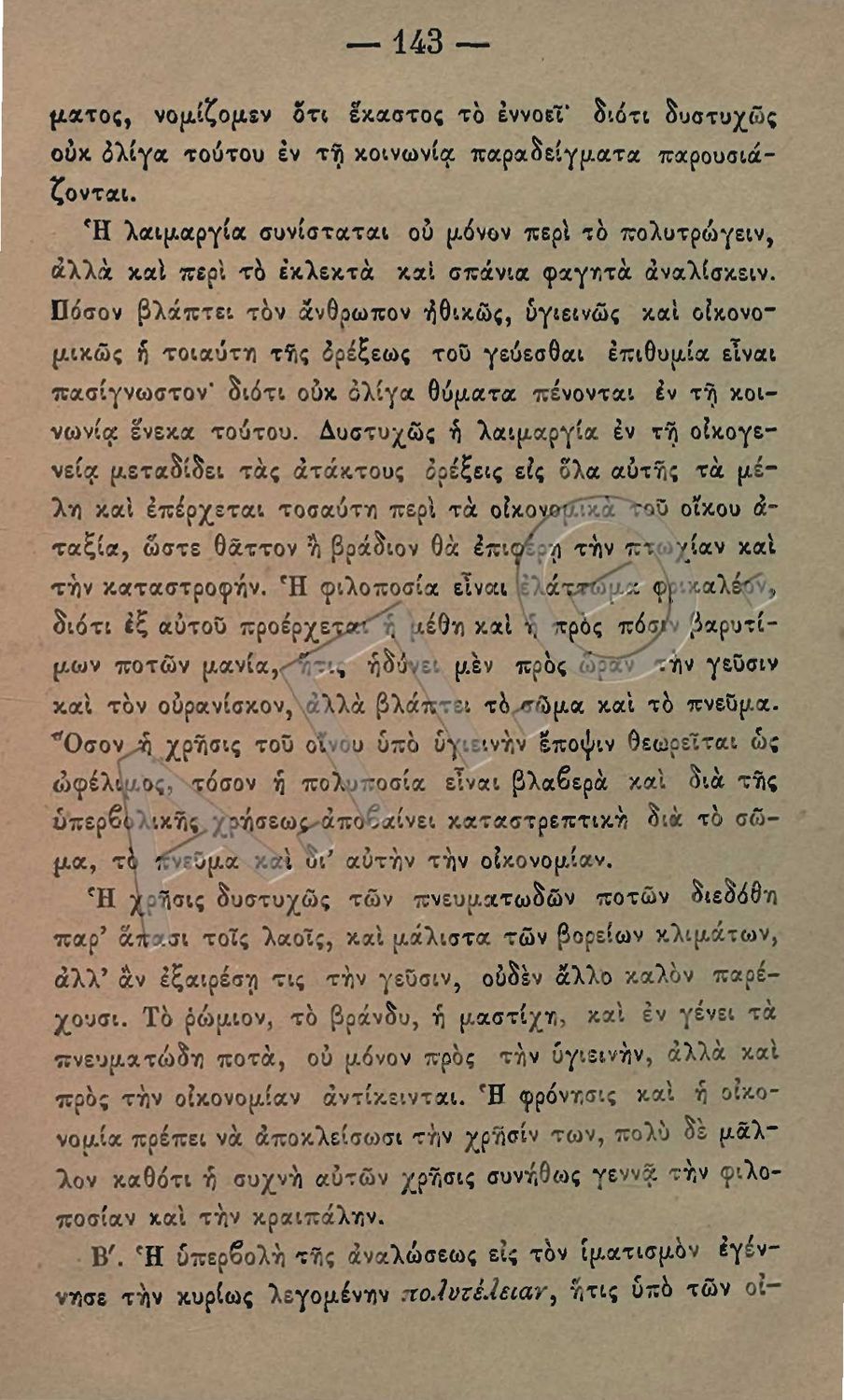 Σχολικό εγχειρίδιο για τις τάξεις του Παρθεναγωγείου για το μάθημα της Οικιακής Οικονομίας.