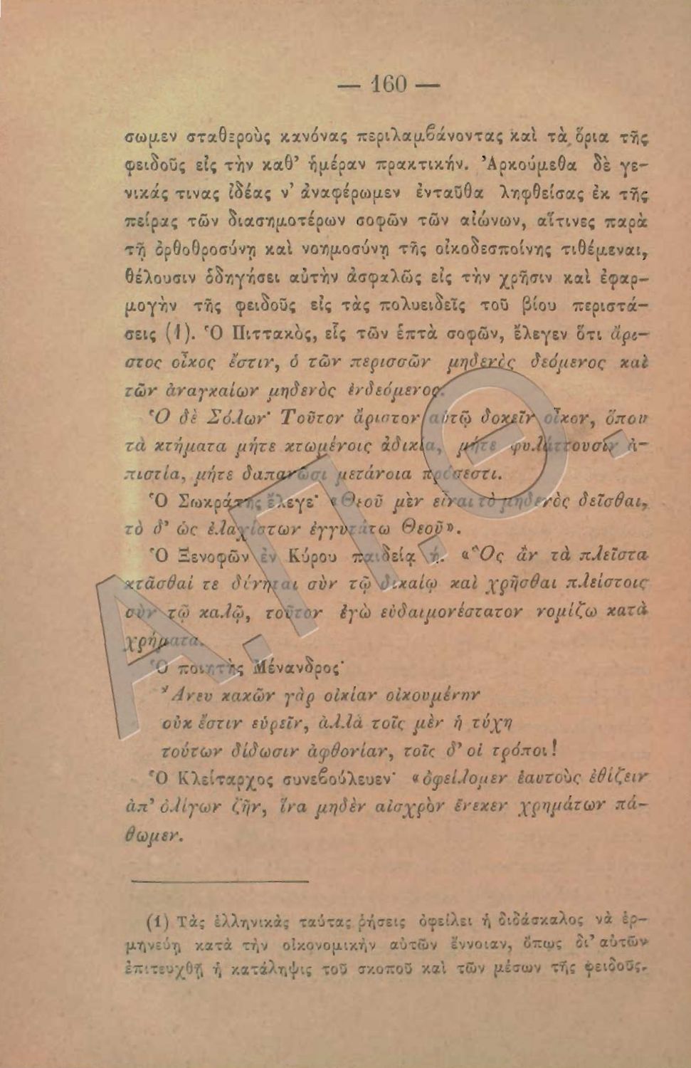 Βαθμίδα εκπαίδευσης: Δευτεροβάθμια Τάξη: Παρθεναγωγείο Μάθημα: Οικιακή Οικονομία Γλώσσα: Καθαρεύουσα Παρουσίαση περιεχομένου: Σχολικό εγχειρίδιο για τις τάξεις του Παρθεναγωγείου για το μάθημα της Οικιακής Οικονομίας. |