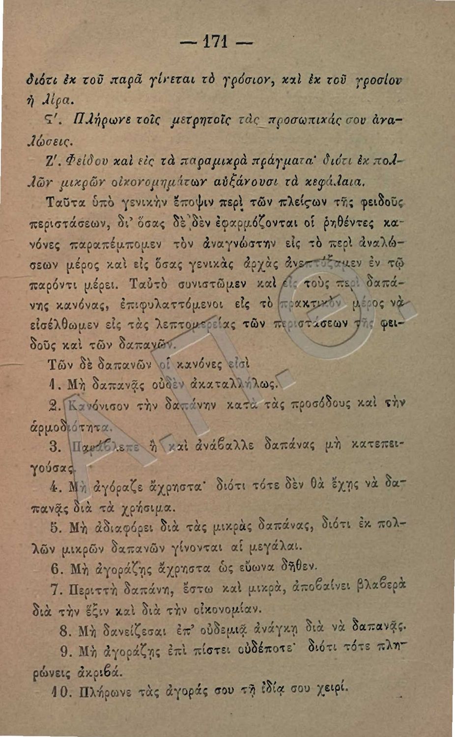 Σχολικό εγχειρίδιο για τις τάξεις του Παρθεναγωγείου για το μάθημα της Οικιακής Οικονομίας.