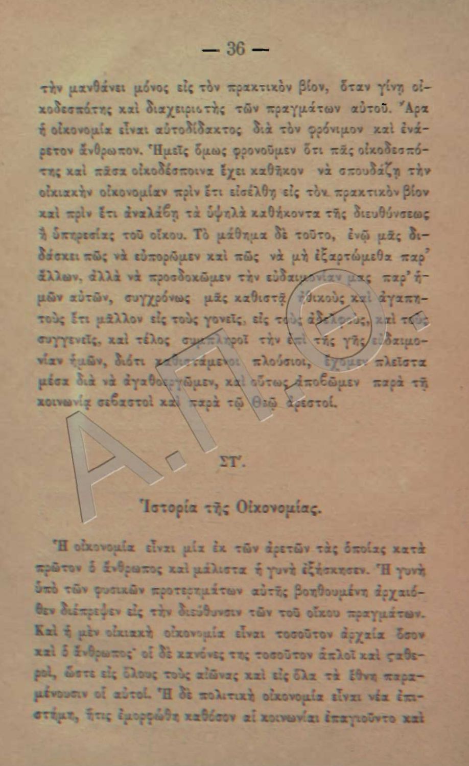 Σχολικό εγχειρίδιο για τις τάξεις του Παρθεναγωγείου για το μάθημα της Οικιακής Οικονομίας.