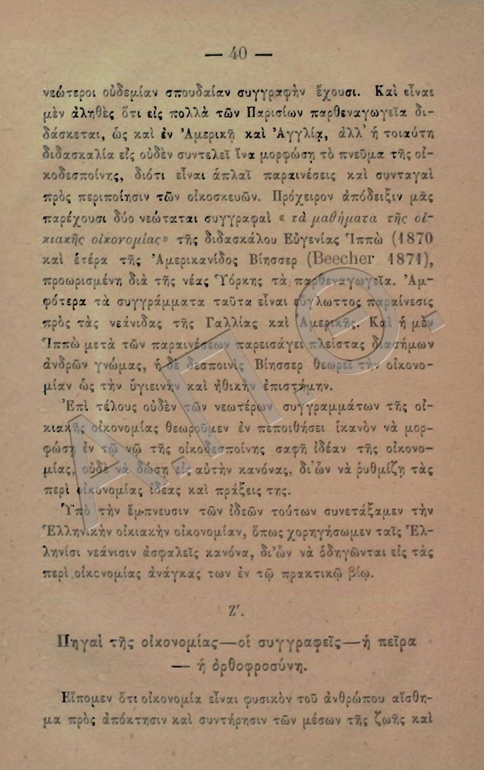 Παρουσίαση περιεχομένου: Σχολικό εγχειρίδιο για τις τάξεις του Παρθεναγωγείου για το μάθημα της Οικιακής Οικονομίας.
