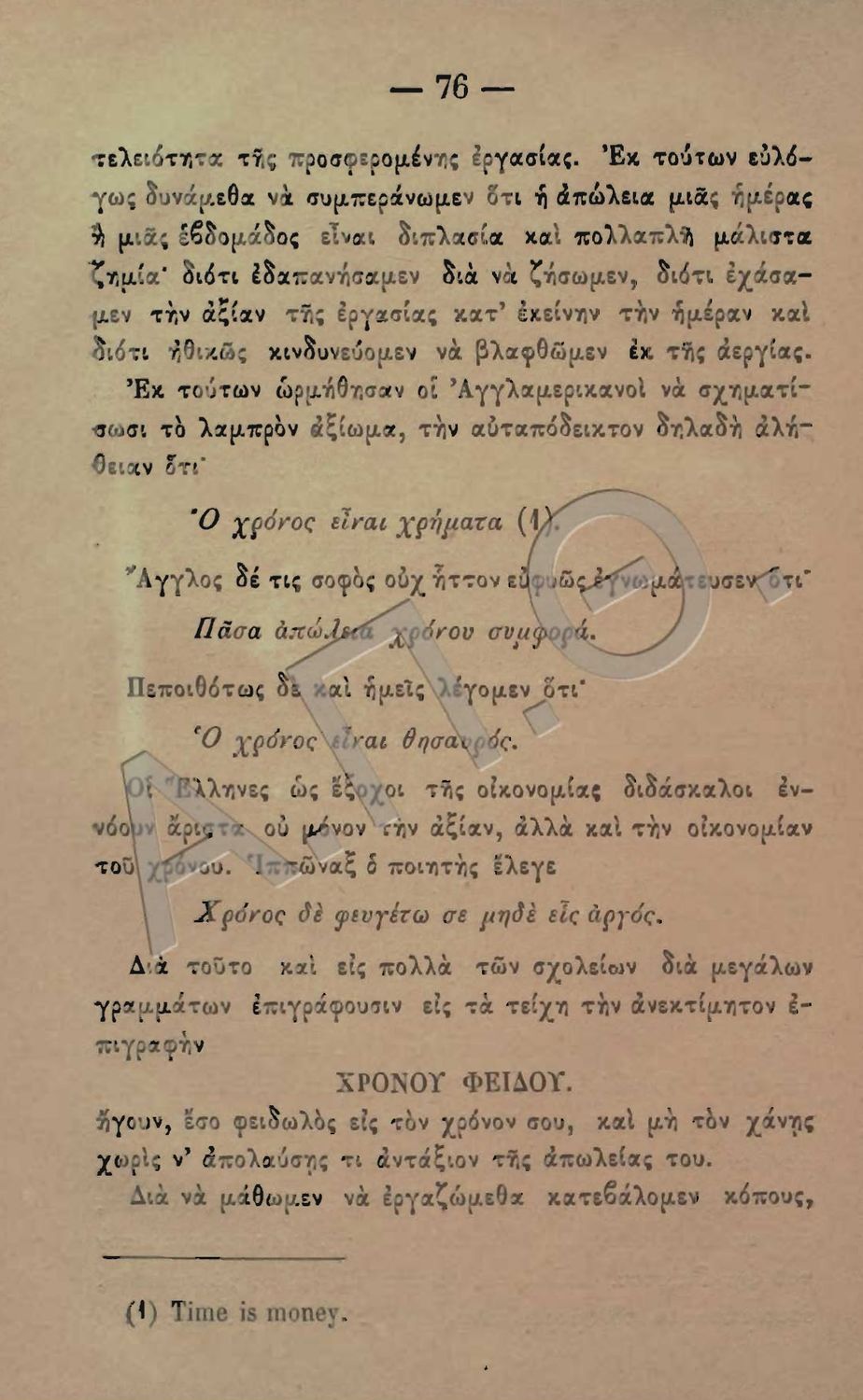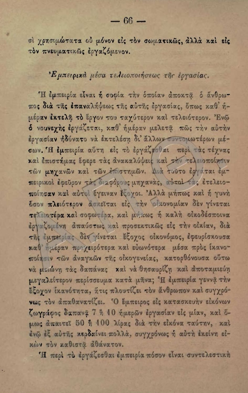 Βαθμίδα εκπαίδευσης: Δευτεροβάθμια Τάξη: Παρθεναγωγείο Μάθημα: Οικιακή Οικονομία Γλώσσα: Καθαρεύουσα Παρουσίαση περιεχομένου: Σχολικό εγχειρίδιο για τις τάξεις του Παρθεναγωγείου για το μάθημα της Οικιακής Οικονομίας. |