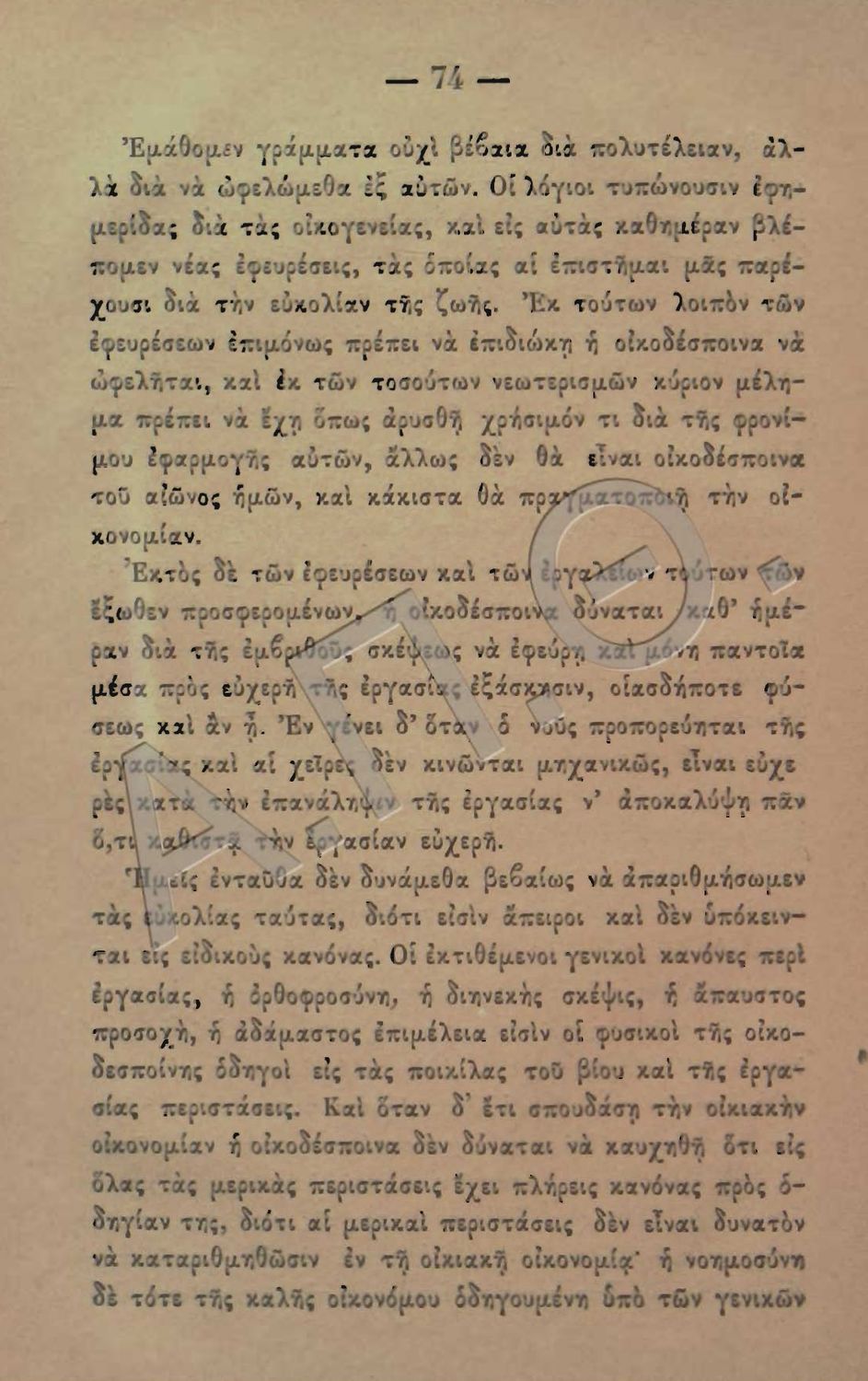 Σχολικό εγχειρίδιο για τις τάξεις του Παρθεναγωγείου για το μάθημα της Οικιακής Οικονομίας.