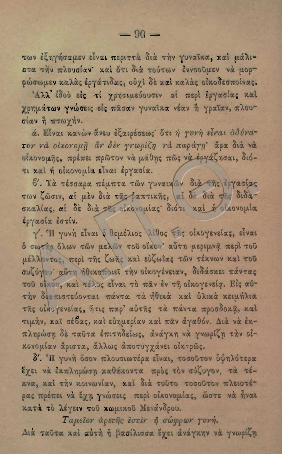 520 ## _aΣχολικό εγχειρίδιο για τις τάξεις του Παρθεναγωγείου για το μάθημα της Οικιακής Οικονομίας.