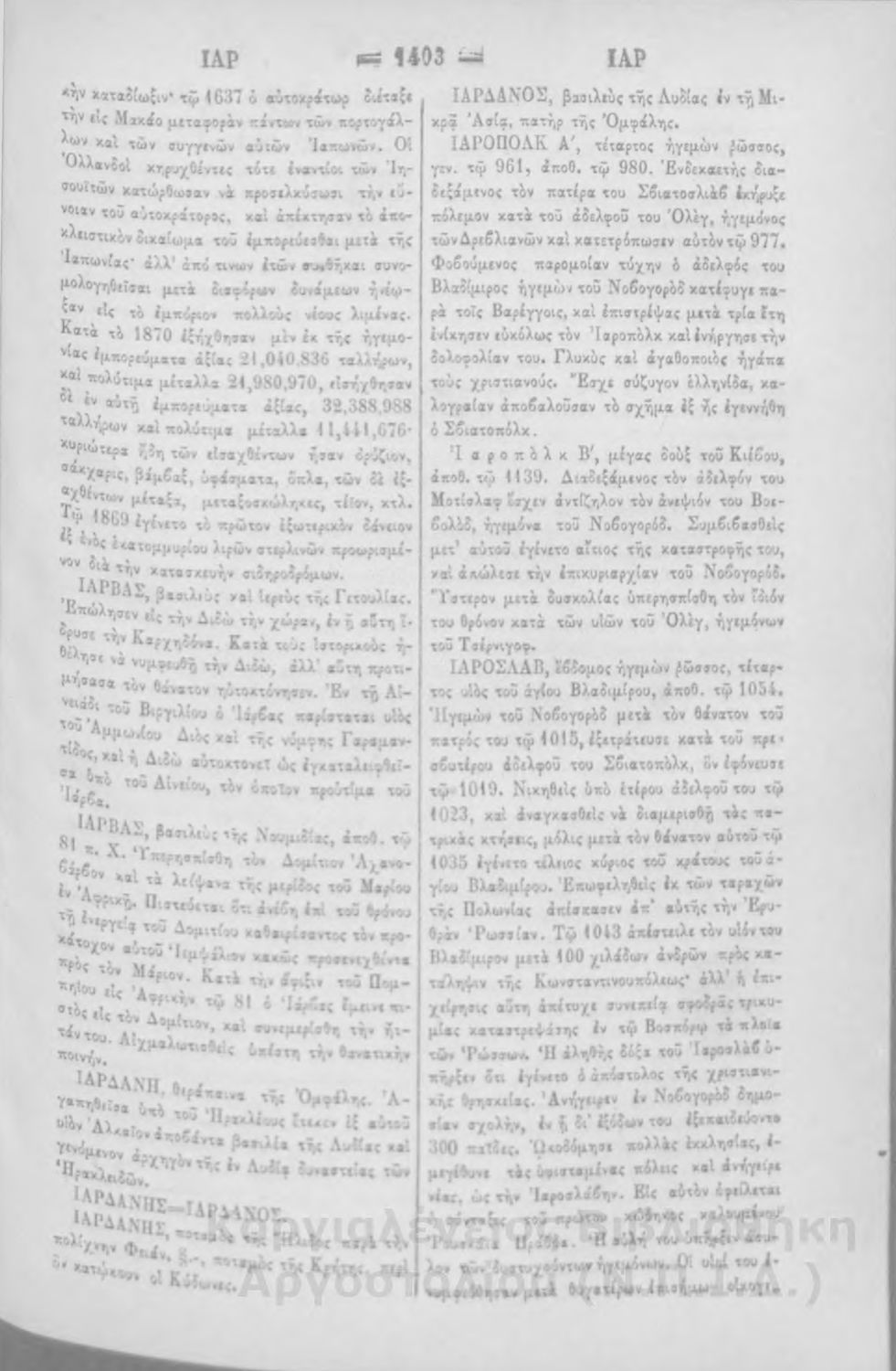 Λεξικόν Ιστορίας και Γεωγραφίας : διαλαμβάνον περίληψιν της ιστορίας, φυσικήν και πολιτικήν χωρογραφίαν, τους βίους των μεγάλων ανδρών, τους μύθους και τας παραδόσεις παντών των Εθνών από των αρχαιοτάτων χρόνων μέχρι του νυν