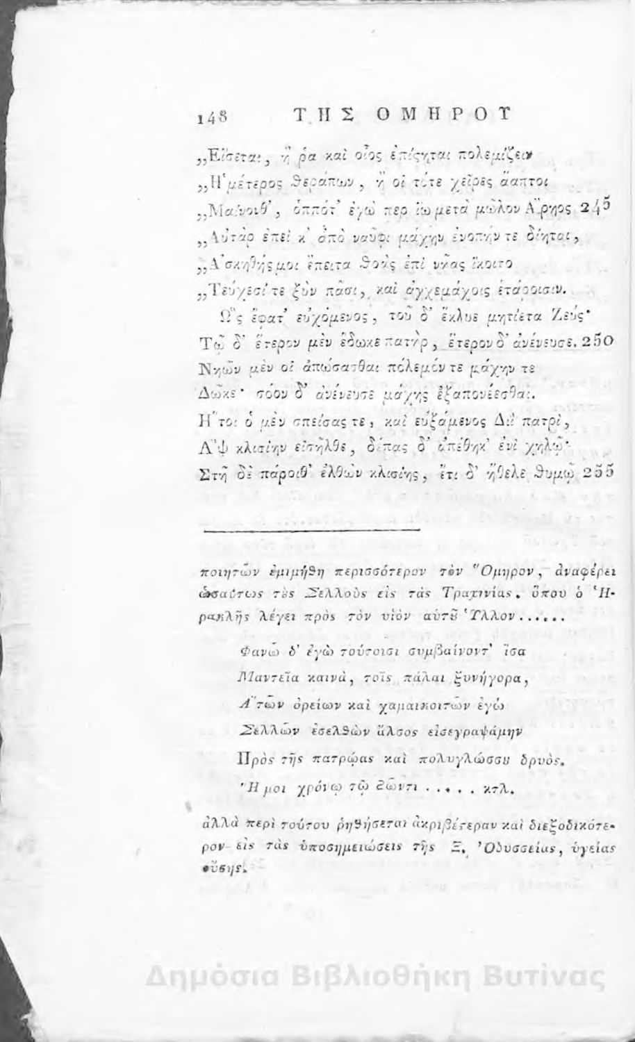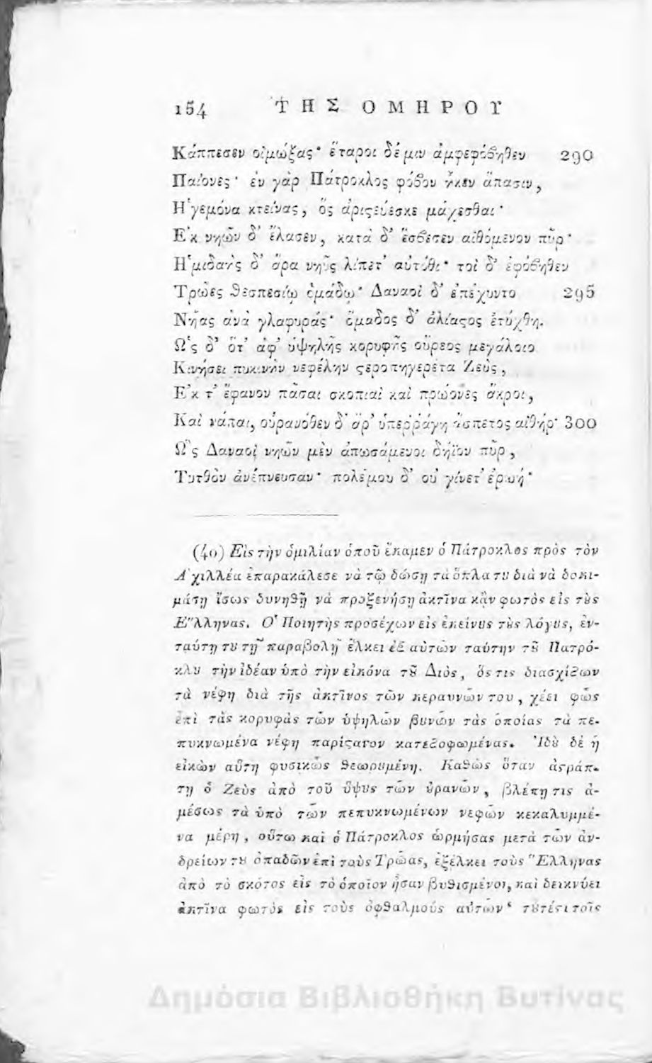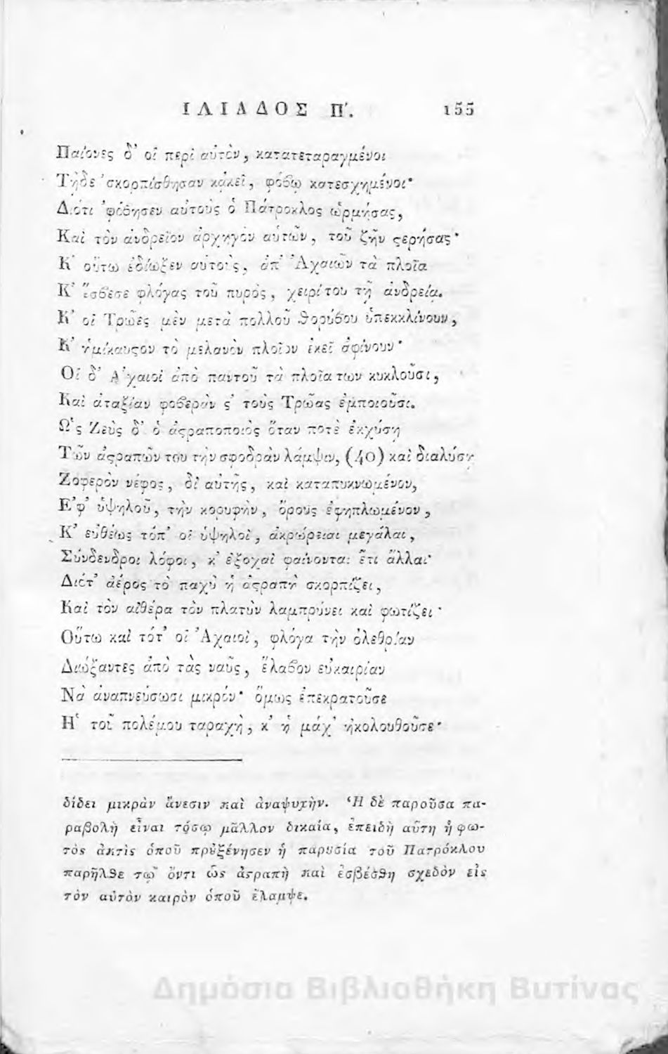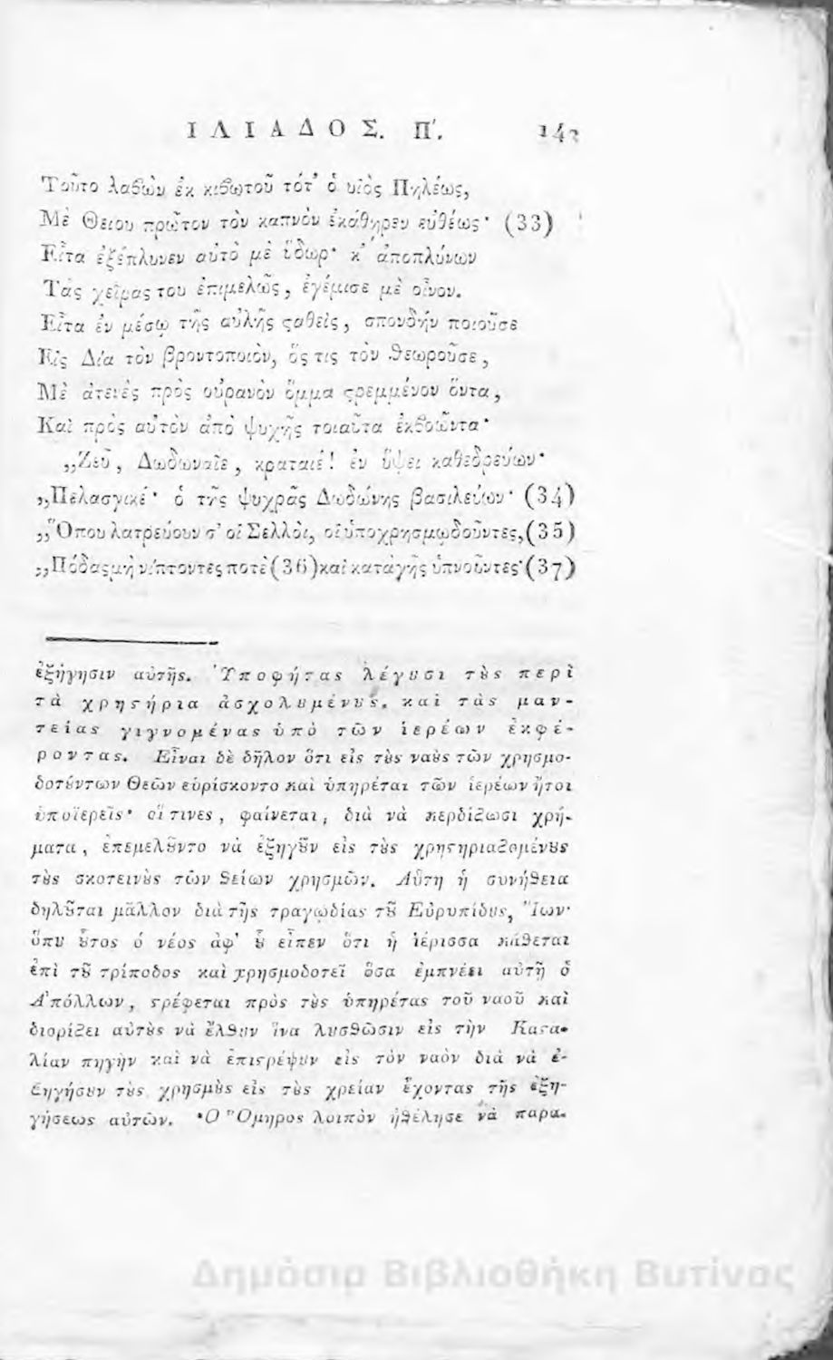 Ομήρου Ιλιάς : Παραφρασθείσα καί ομοιοκαταλήκτως στιχουργηθείσα μετά προσθήκης αναγκαίων καί επωφελών υποσημειώσεων καί αναρτήσεως της μυθολογίας, αλληγορίας καί αληθούς ιστορίας πάντων των εν αυτή εμπιπτόντων Θεών, ημιθέων και ένδόξων υποκειμένων προς χρήσιν της νεολαίας, και των προς κατάληψιν του ομηρικού καλάμου αδυνάτων