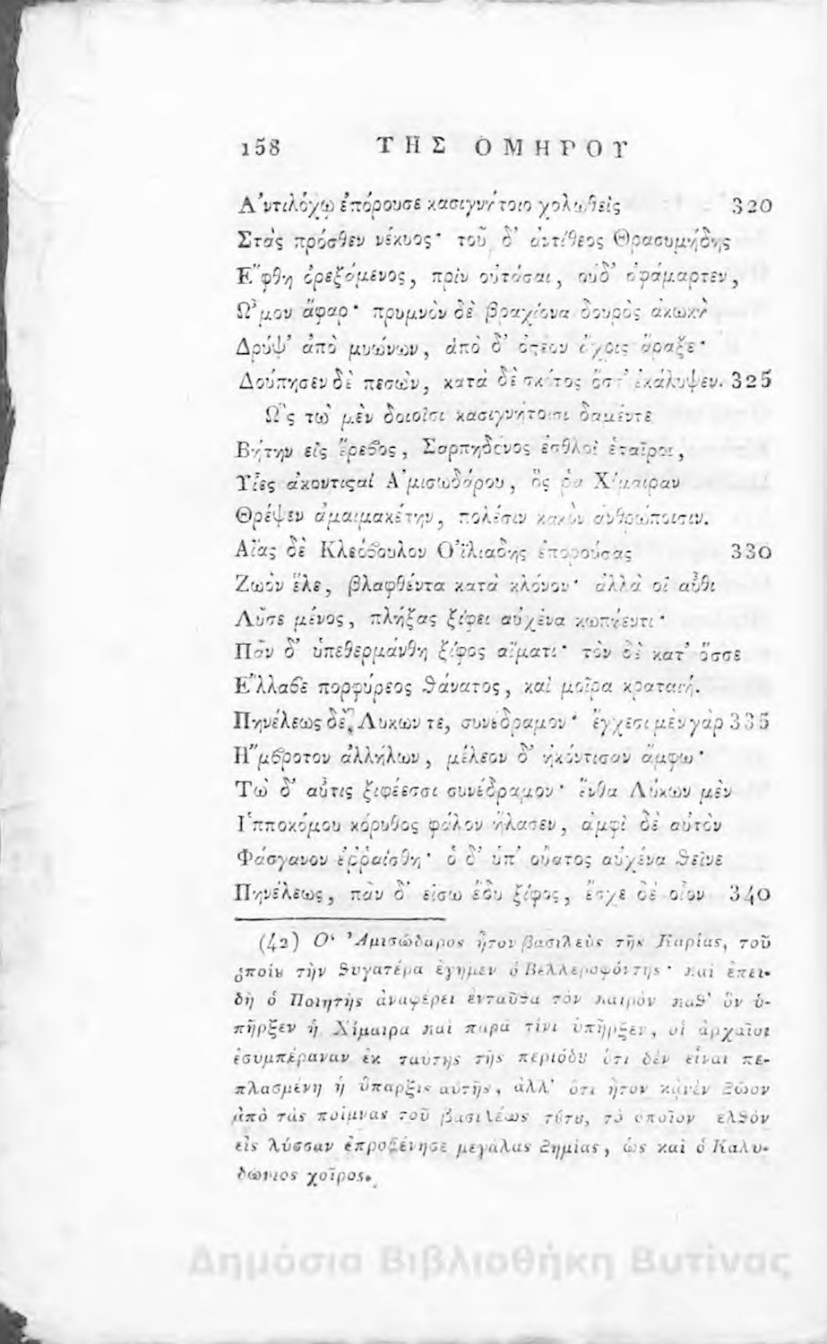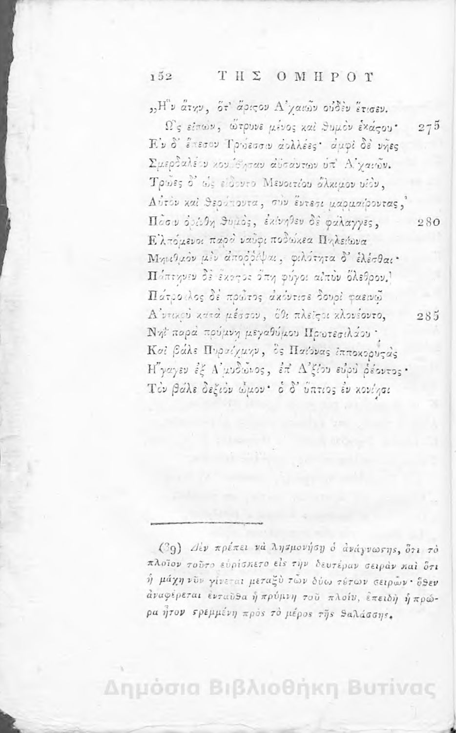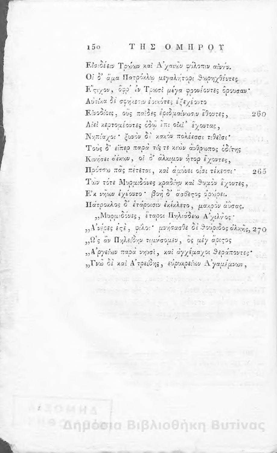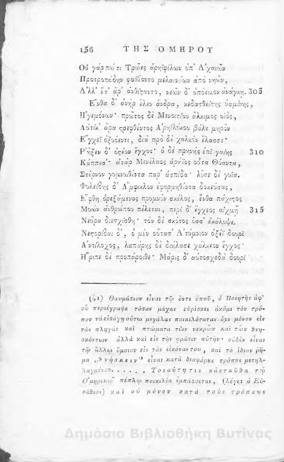 Ομήρου Ιλιάς : Παραφρασθείσα καί ομοιοκαταλήκτως στιχουργηθείσα μετά προσθήκης αναγκαίων καί επωφελών υποσημειώσεων καί αναρτήσεως της μυθολογίας, αλληγορίας καί αληθούς ιστορίας πάντων των εν αυτή εμπιπτόντων Θεών, ημιθέων και ένδόξων υποκειμένων προς χρήσιν της νεολαίας, και των προς κατάληψιν του ομηρικού καλάμου αδυνάτων