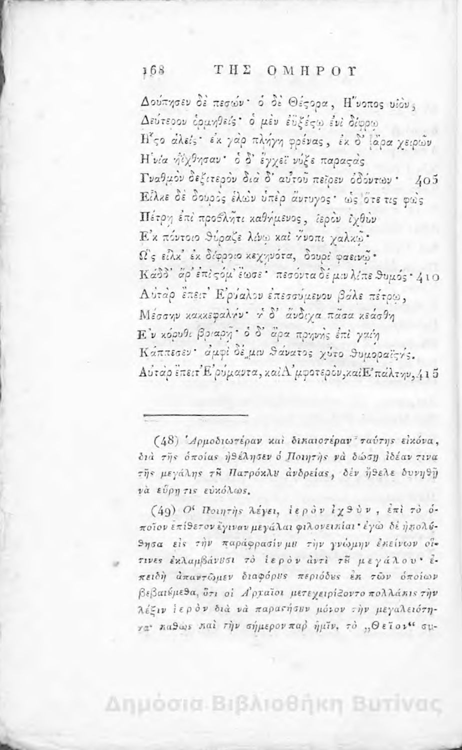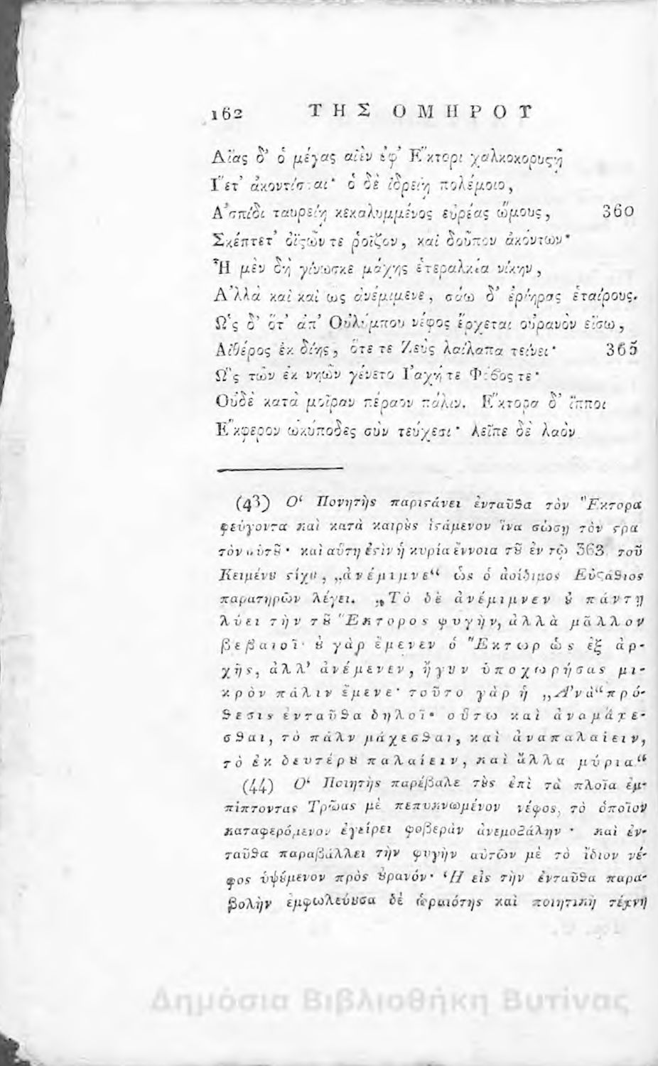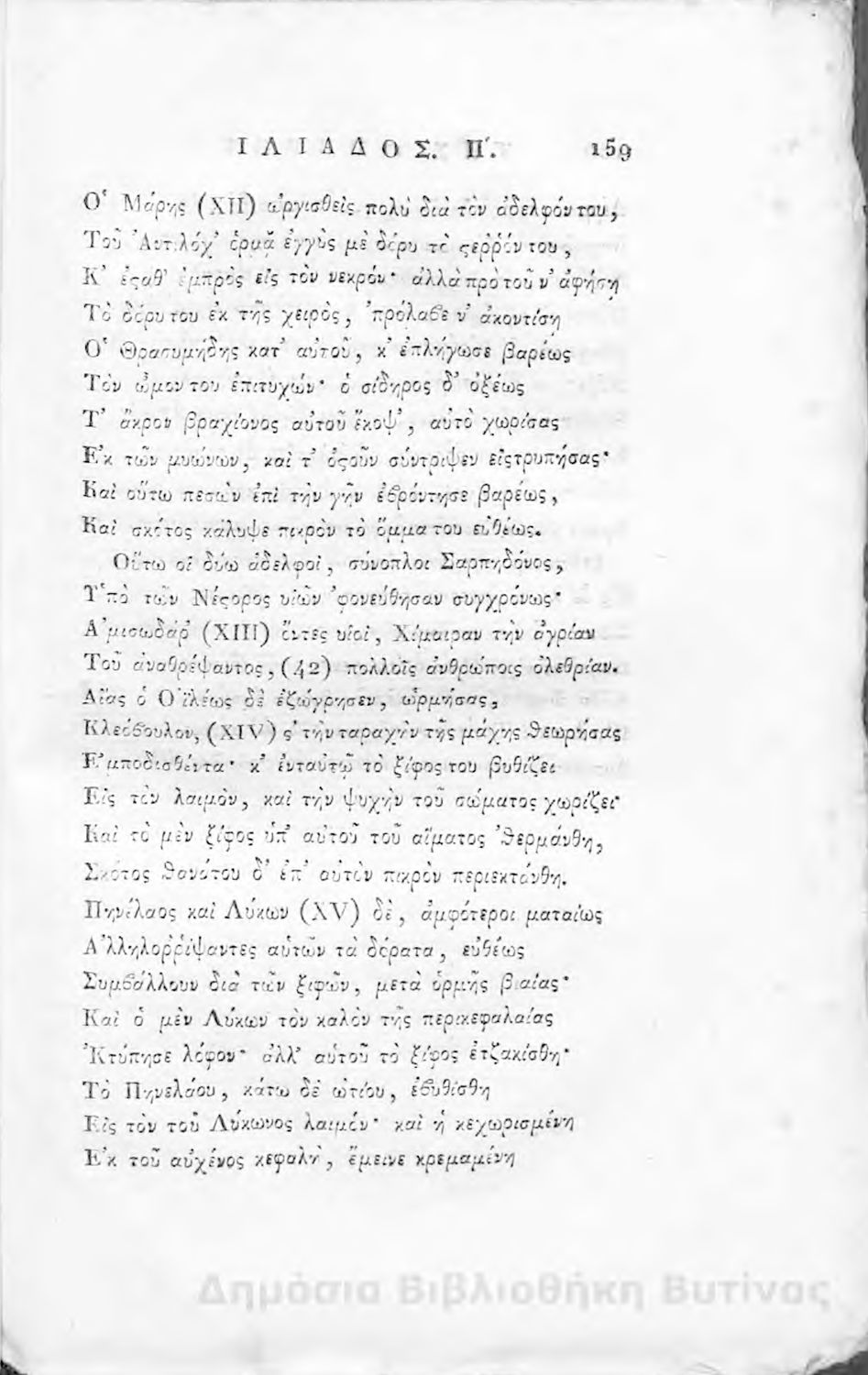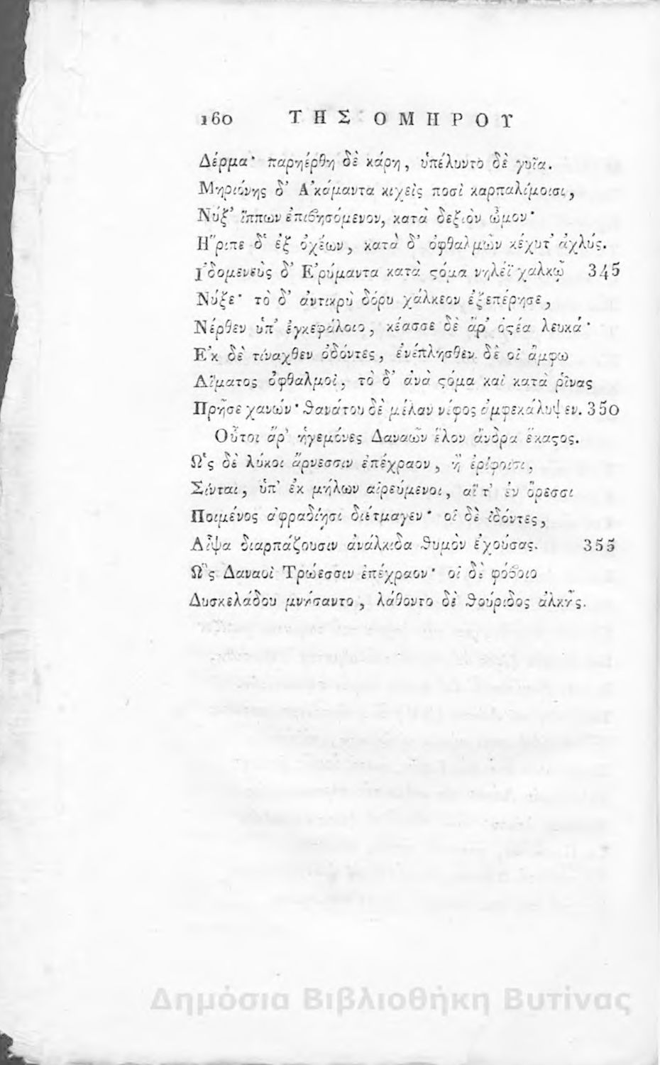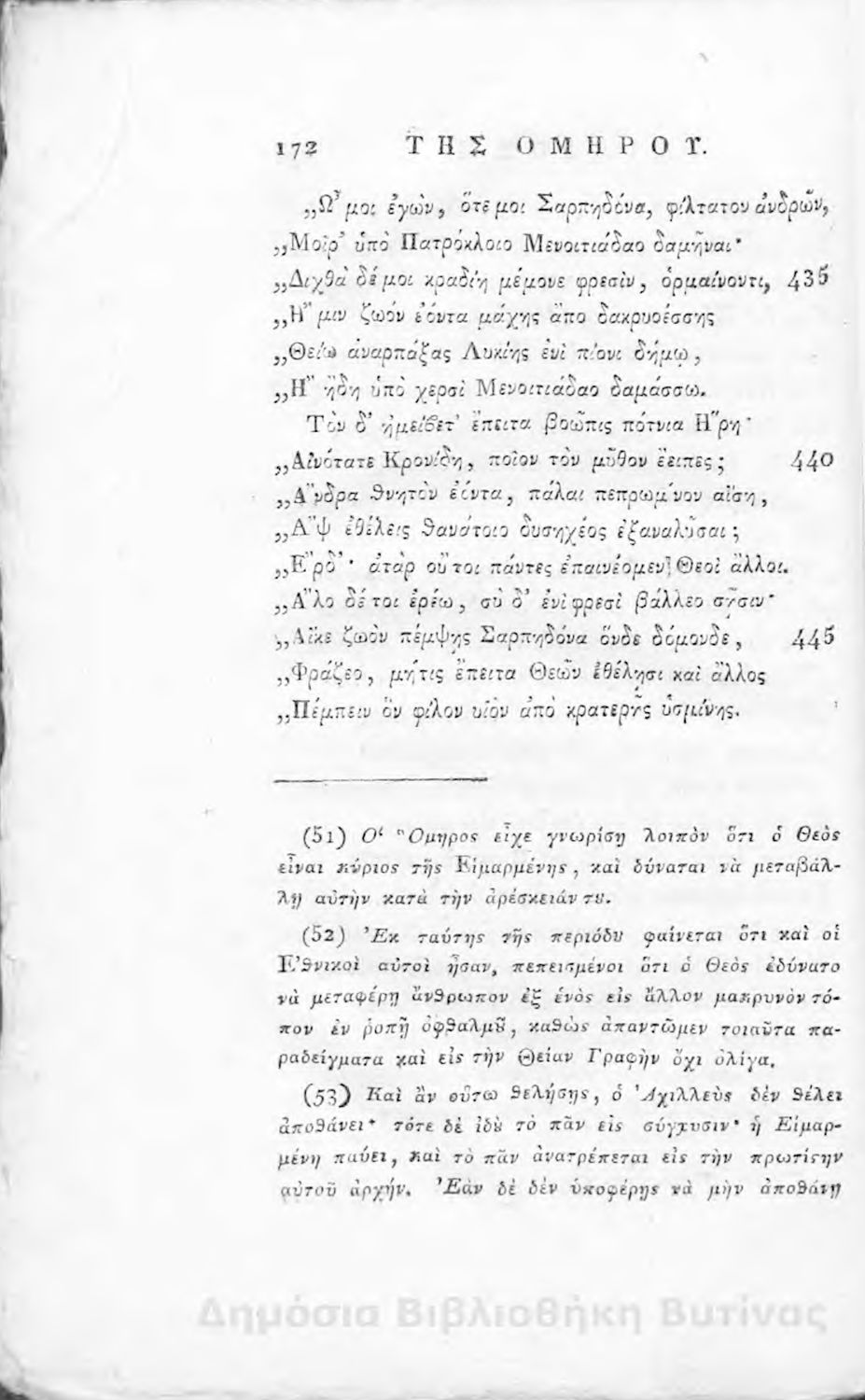 Ομήρου Ιλιάς : Παραφρασθείσα καί ομοιοκαταλήκτως στιχουργηθείσα μετά προσθήκης αναγκαίων καί επωφελών υποσημειώσεων καί αναρτήσεως της μυθολογίας, αλληγορίας καί αληθούς ιστορίας πάντων των εν αυτή εμπιπτόντων Θεών, ημιθέων και ένδόξων υποκειμένων προς χρήσιν της νεολαίας, και των προς κατάληψιν του ομηρικού καλάμου αδυνάτων
