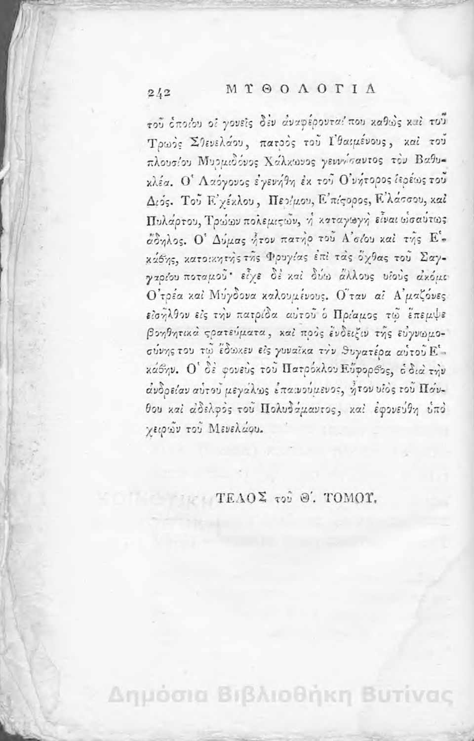Τίτλος: Ομήρου Ιλιάς : Παραφρασθείσα καί ομοιοκαταλήκτως στιχουργηθείσα μετά προσθήκης αναγκαίων καί επωφελών υποσημειώσεων καί αναρτήσεως της μυθολογίας, αλληγορίας καί αληθούς ιστορίας πάντων των εν αυτή εμπιπτόντων Θεών, ημιθέων και ένδόξων υποκειμένων προς χρήσιν της νεολαίας, και των προς κατάληψιν του ομηρικού καλάμου αδυνάτων