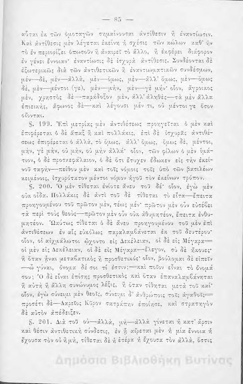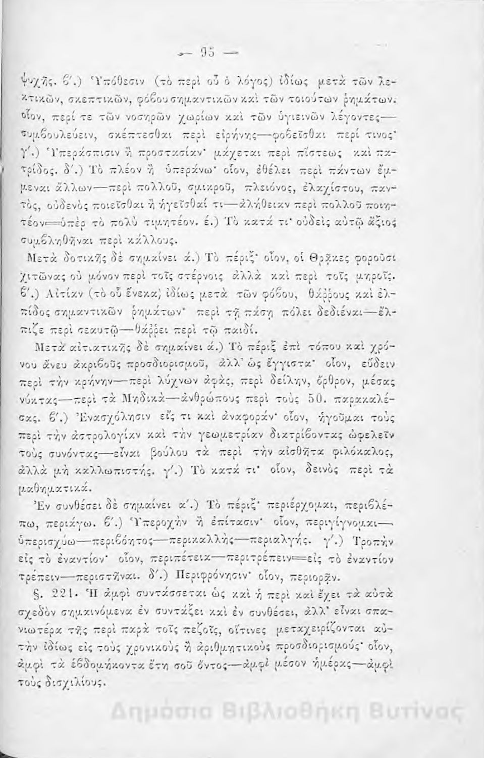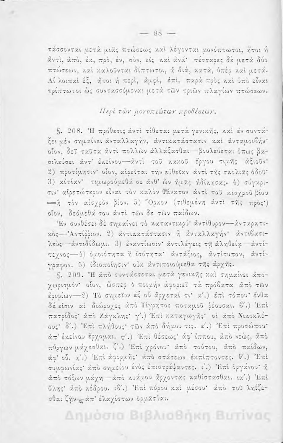 Σχολικό εγχειρίδιο Αρχαίων Ελληνικών για τους μαθητές των Ελληνικών Σχολείων και Παρθεναγωγείων που εξετάζει τα μέρη του λόγου και την σύνταξή τους.