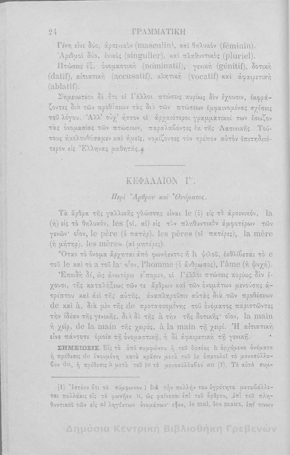 Γραμματική της γαλλικής γλώσσης : συνταχθείσα προς χρήσιν των σχολείων της Ελλάδος