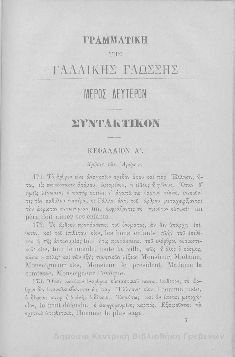 Τίτλος: Γραμματική της γαλλικής γλώσσης : συνταχθείσα προς χρήσιν των σχολείων της Ελλάδος