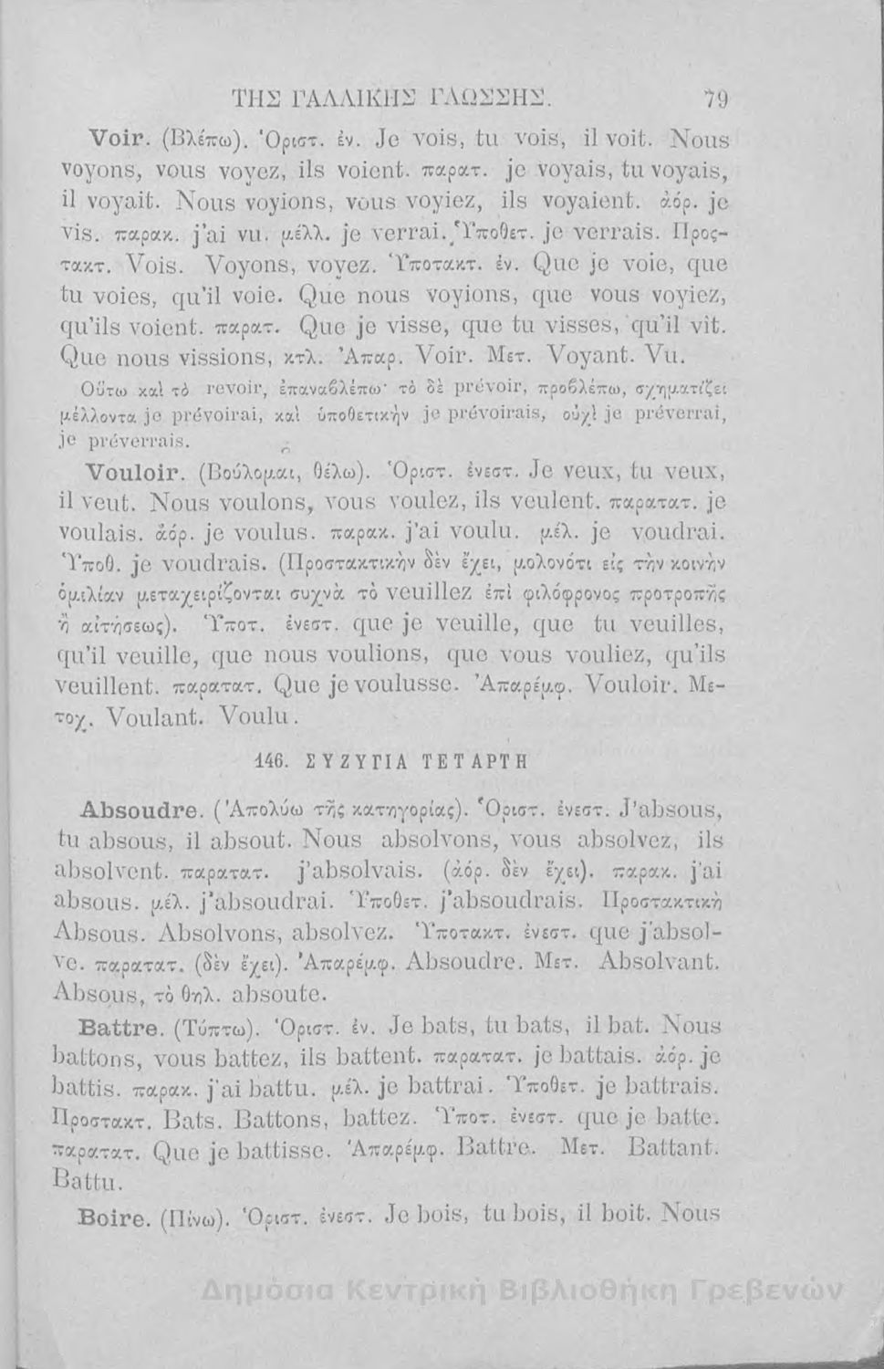 Σχετιζόμενοι όροι:  Γαλλικά, γραμματική, συντακτικόν