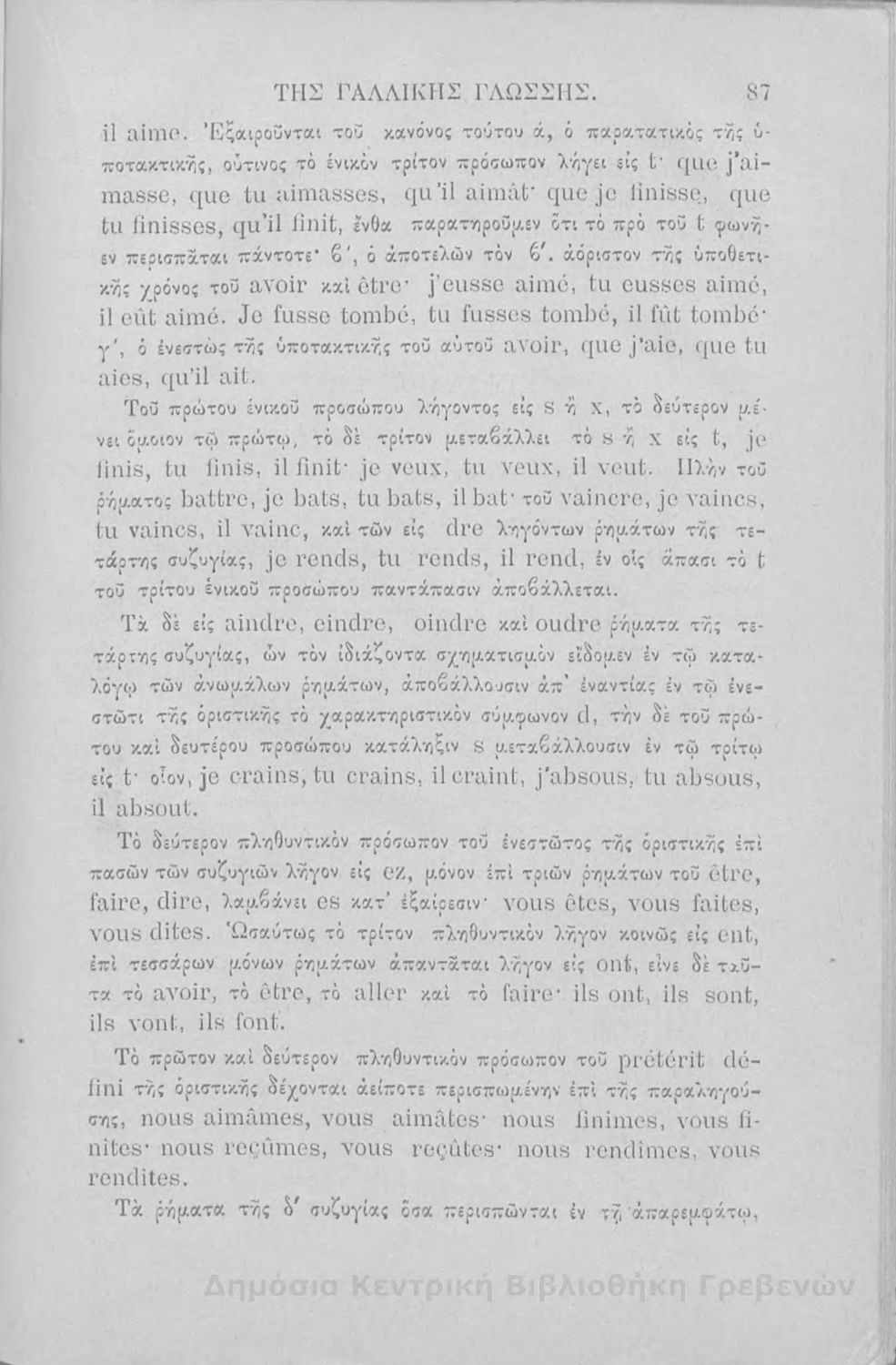 Γραμματική της γαλλικής γλώσσης : συνταχθείσα προς χρήσιν των σχολείων της Ελλάδος