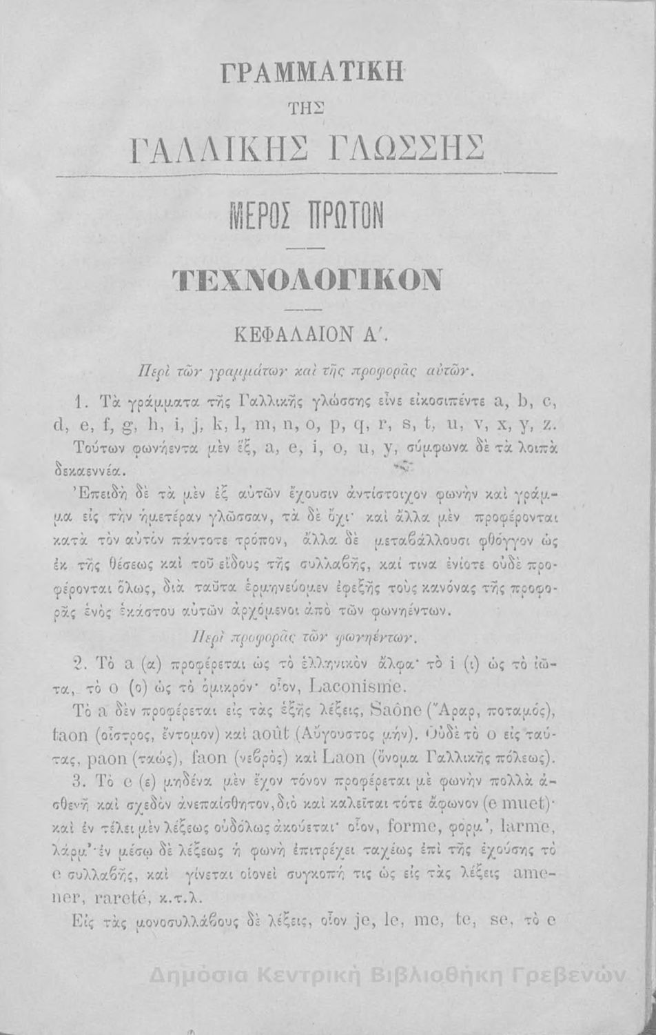 Τίτλος: Γραμματική της γαλλικής γλώσσης : συνταχθείσα προς χρήσιν των σχολείων της Ελλάδος