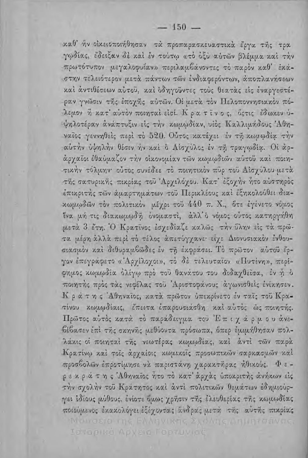 Τάξη:  Γυμνάσιο / Αστικό Σχολείο / Πρακτικό Λύκειο / Παρθεναγωγείο