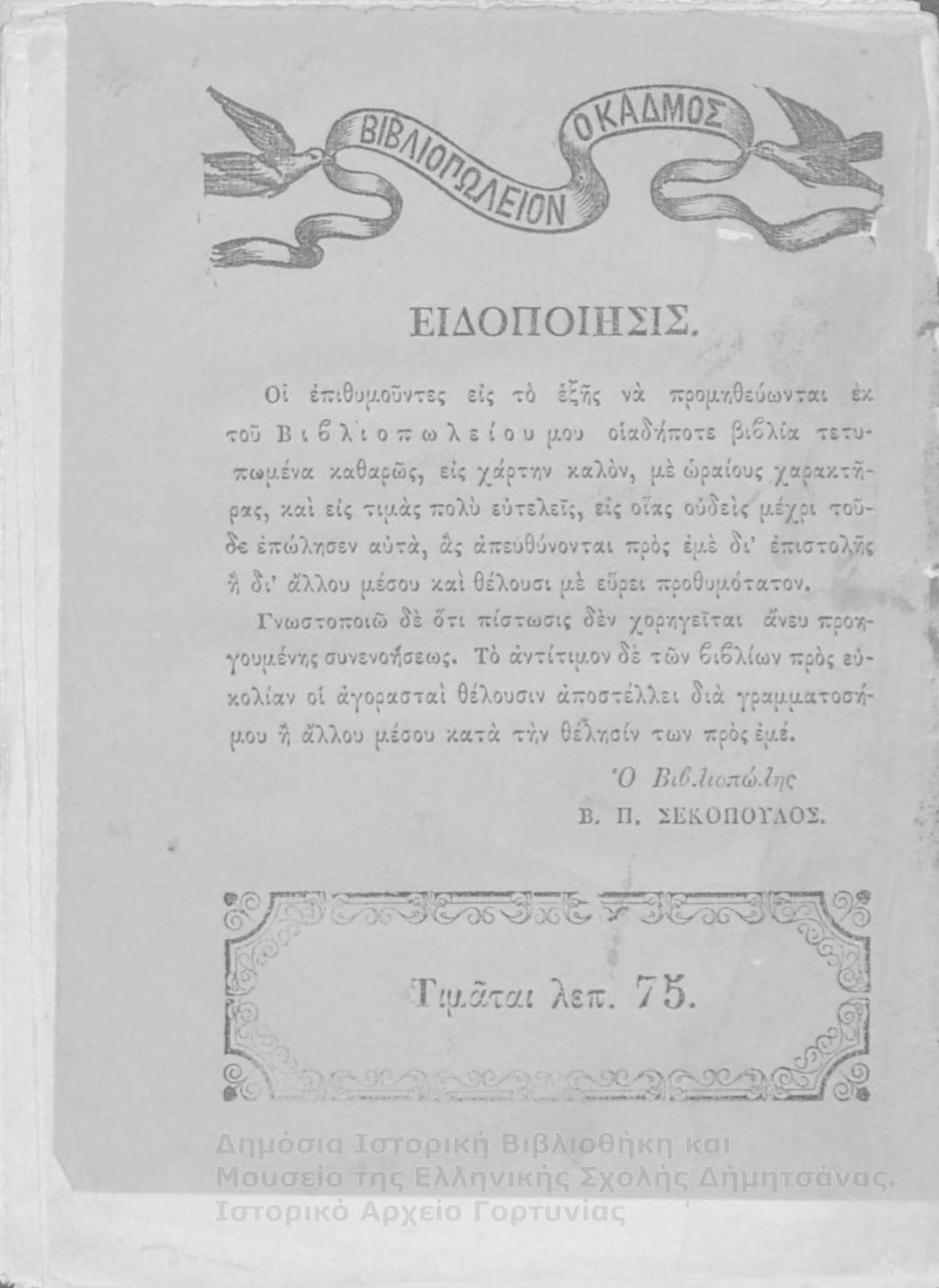 Εκδότης: Βιβλιοπωλείον "ο Κάδμος" Έτος έκδοσης: 1874 |