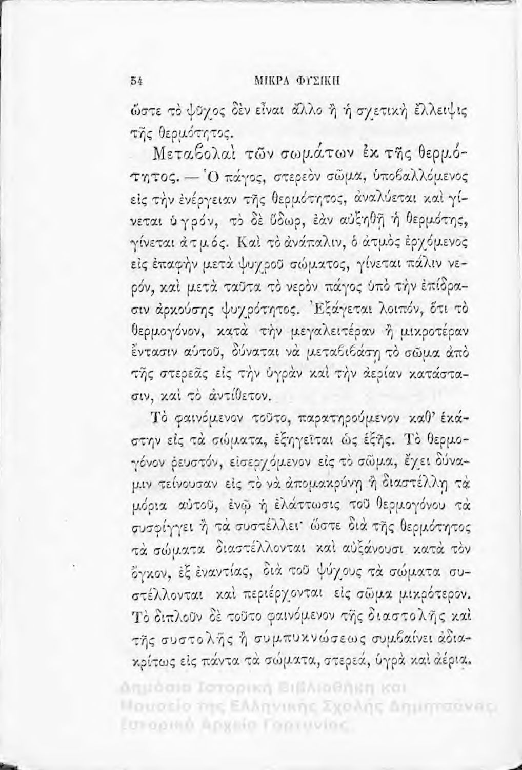 Μικρά Φυσική : προς χρήσιν των δημοτικών σχολείων αρρένων και κοράσιων