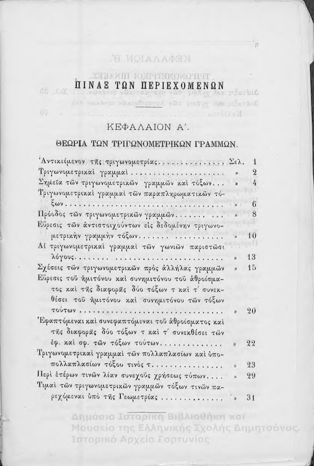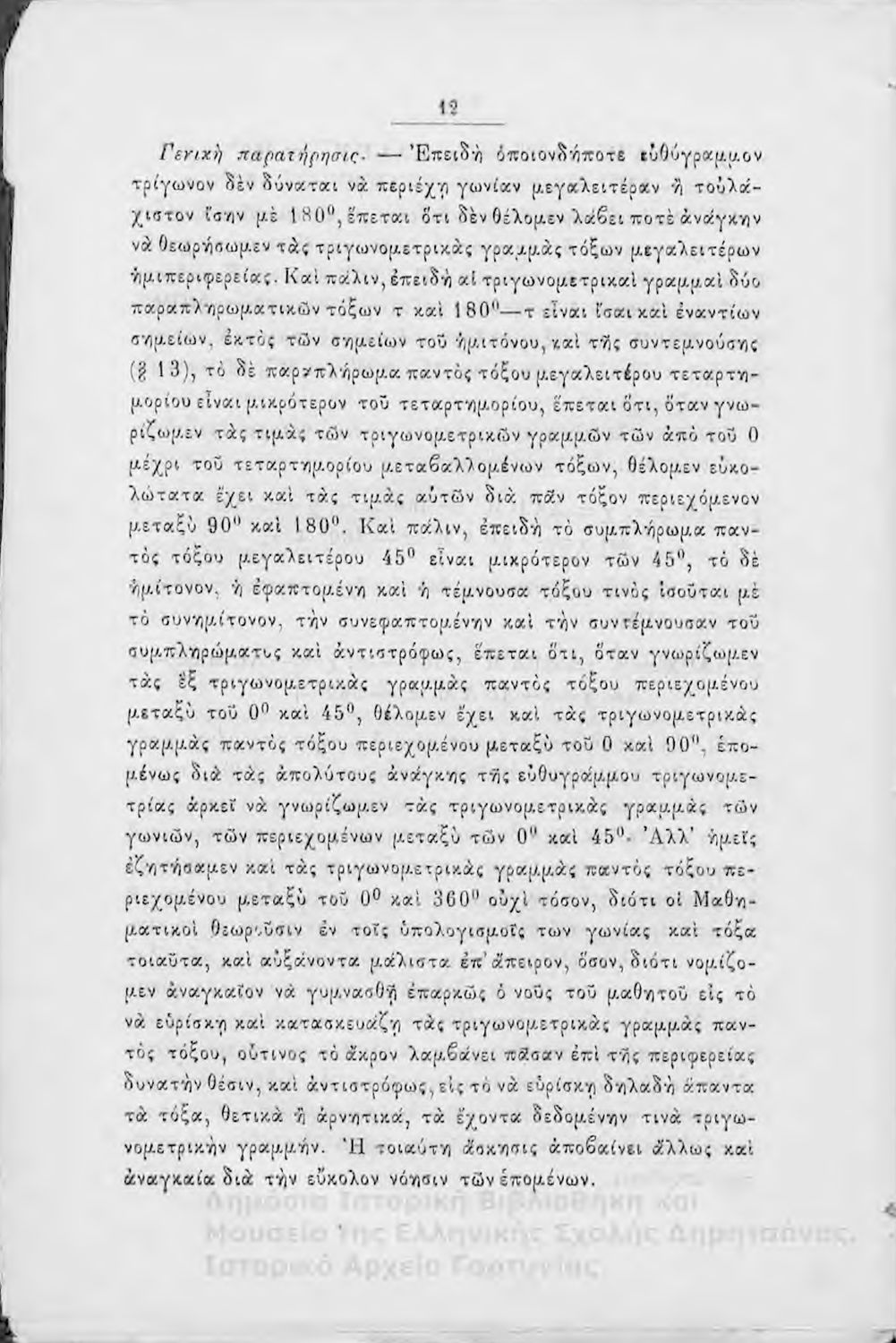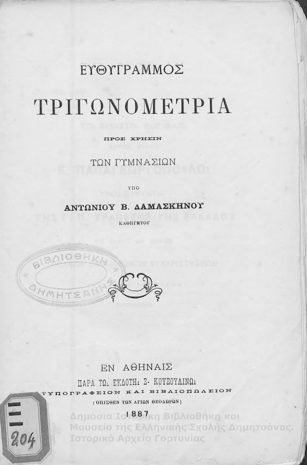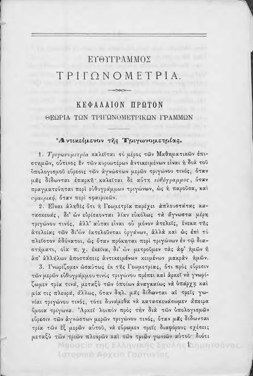 Τίτλος: Ευθύγραμμος Τριγωνομετρία : προς χρήσιν των γυμνασίων