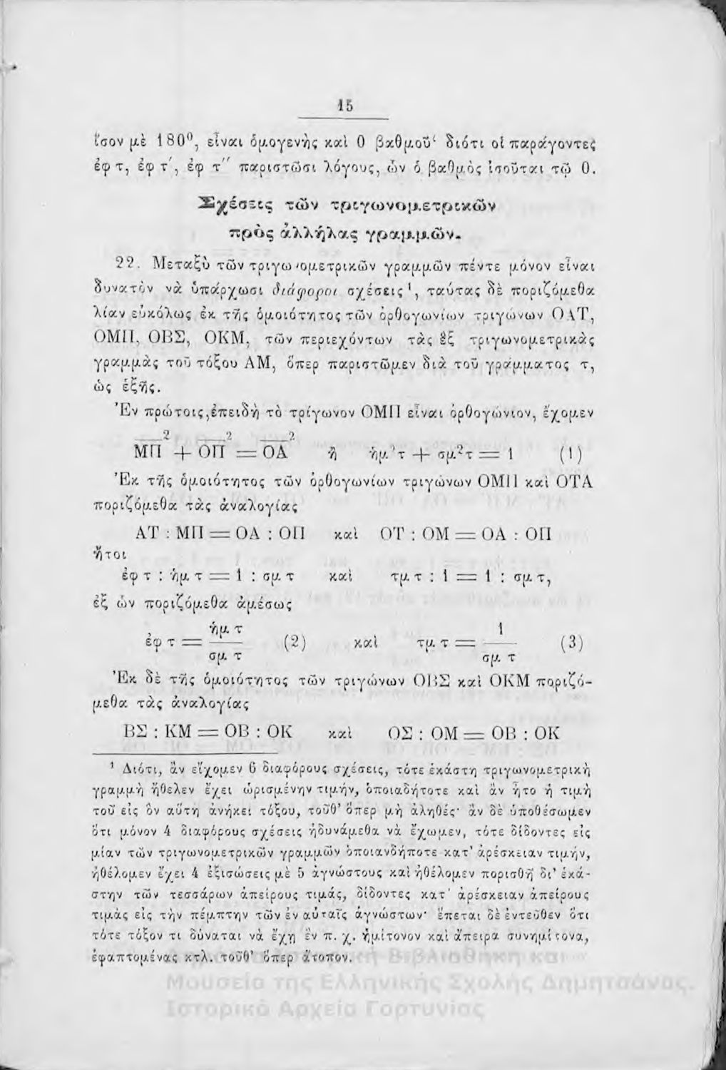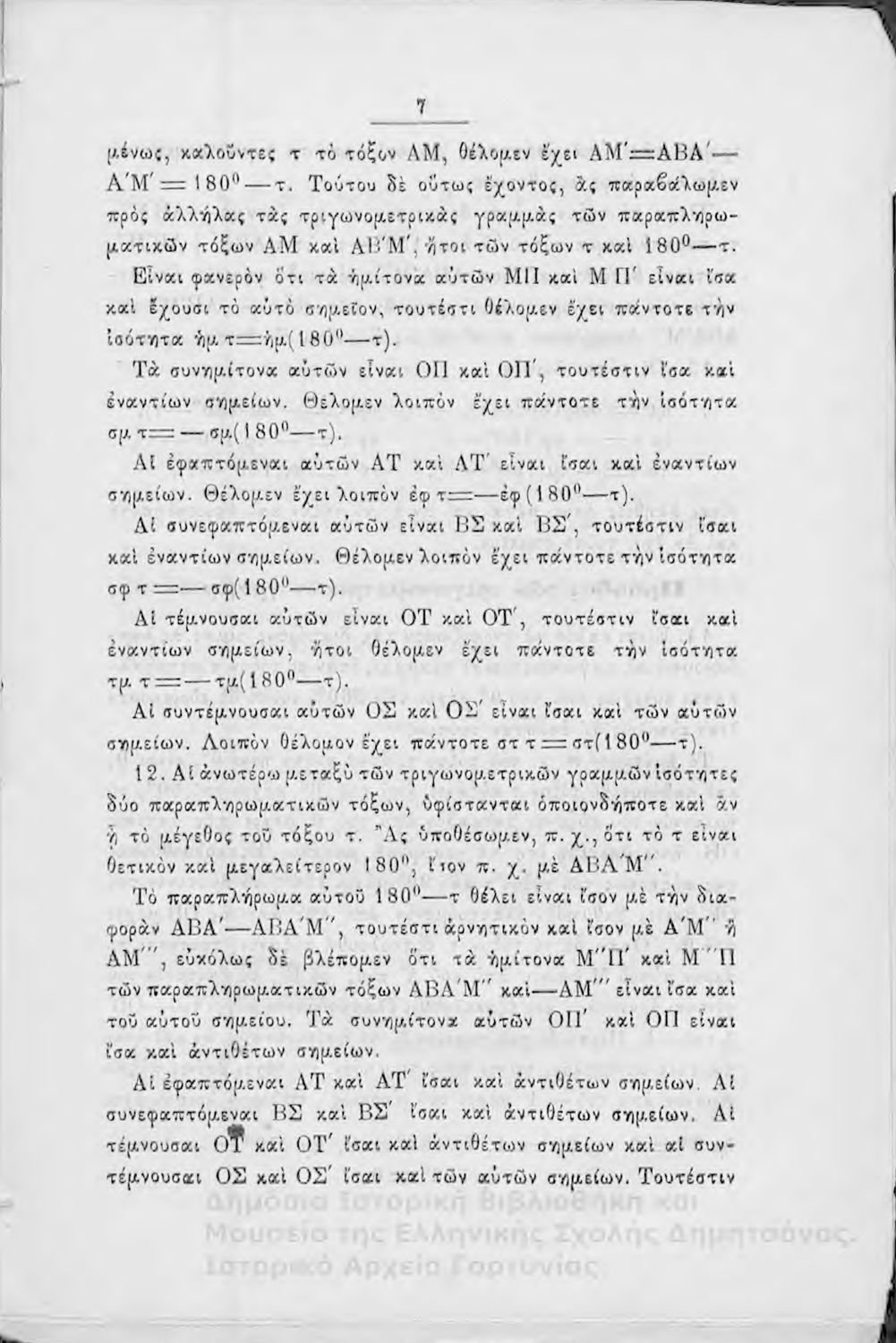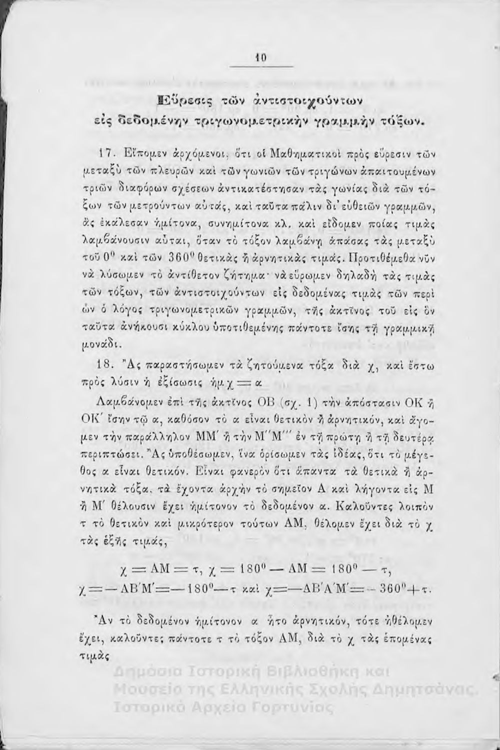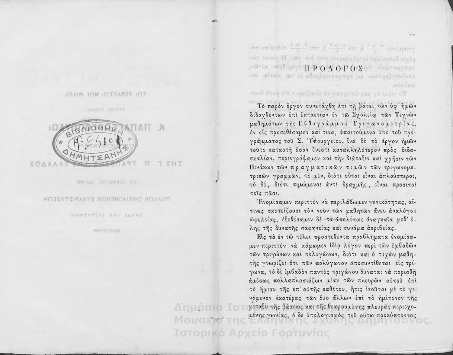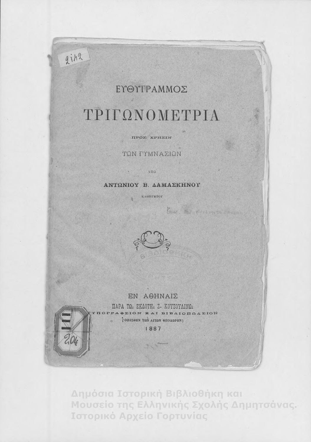 Τίτλος: Ευθύγραμμος Τριγωνομετρία : προς χρήσιν των γυμνασίων